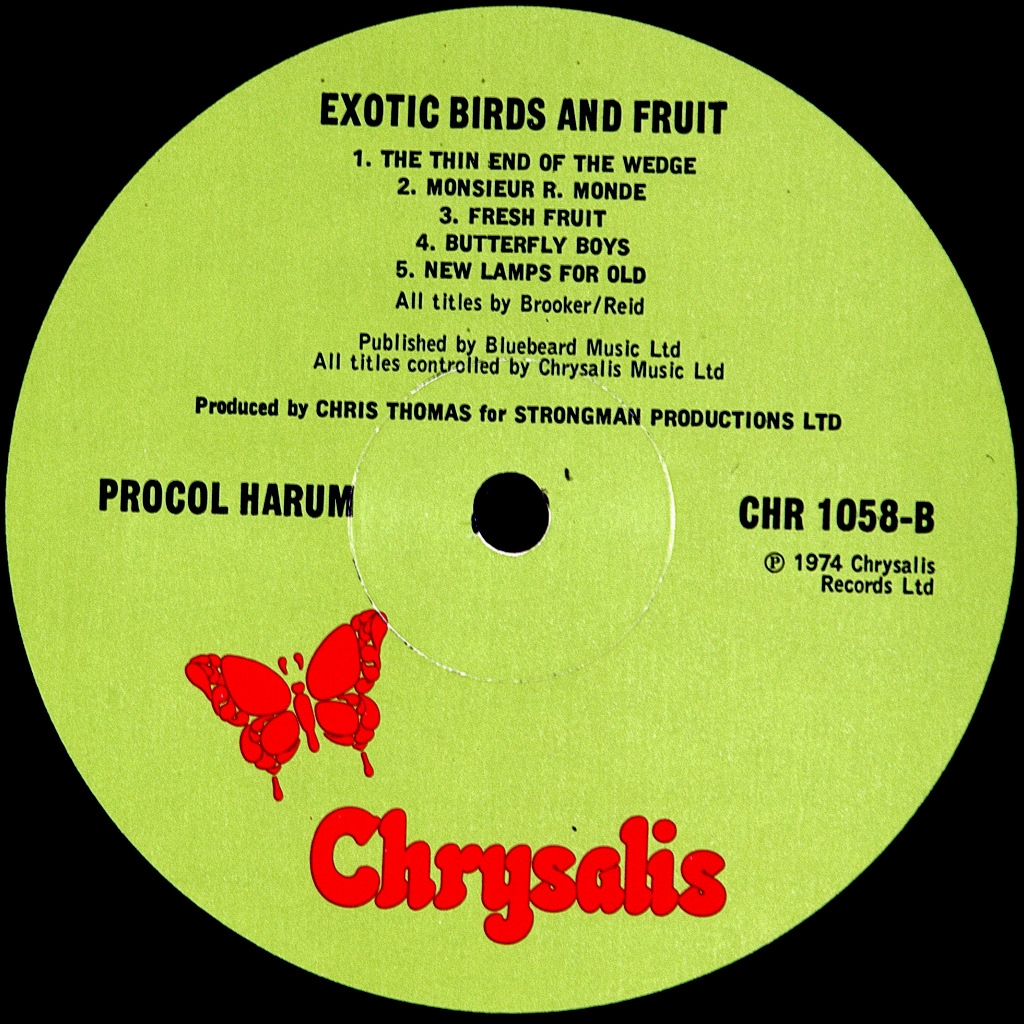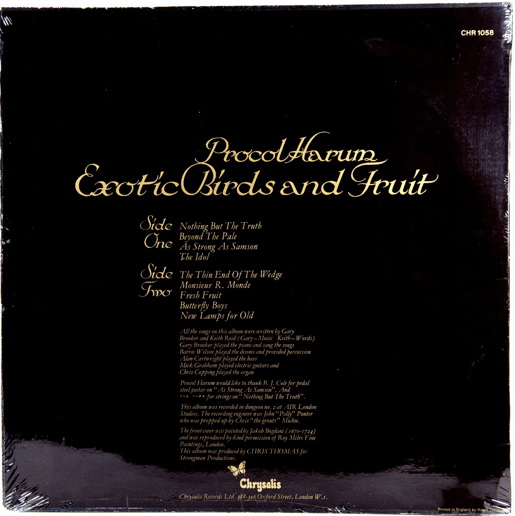 PROCOL HARUM-EXOTIC BIRDS AND FRUIT-1974-ПЕРВЫЙ ПРЕСС UK-CHRYSALIS-CHR1058. Редкий британский оригинал Exotic Birds and Fruit - седьмой студийный альбом британской прогрессивной рок- группы Procol Harum . Он был выпущен в 1974 году. Обложка альбома - Jakob Bogdani, известный венгерский художник, чьи картины посвящены экзотическим птицам и фруктам. Альбом достиг № 86 в чартах альбомов Billboard . В Дании он достиг максимума на 9 месте после выпуска, и почти год спустя, в начале 1975 года, она снова вошла в Топ-20, достигнув максимума на # 19.