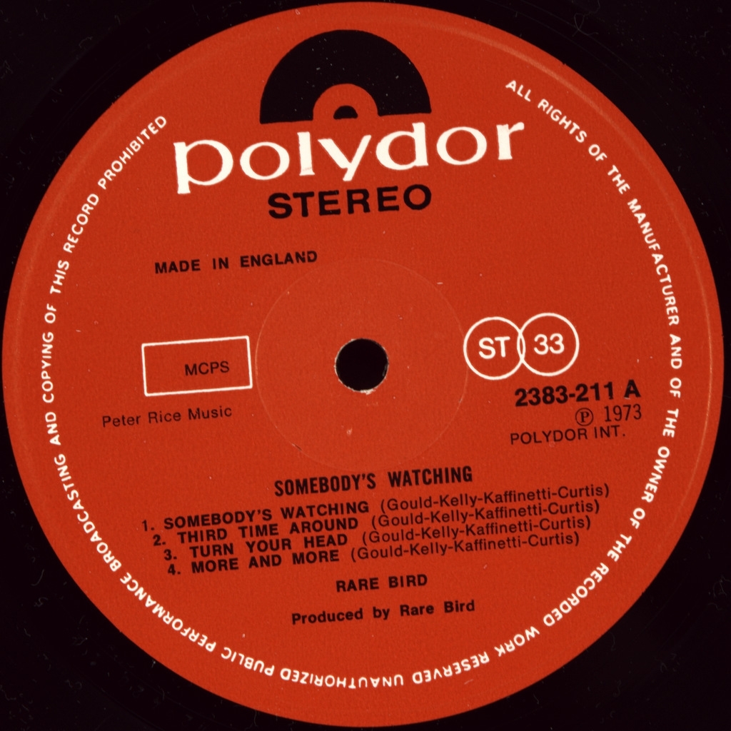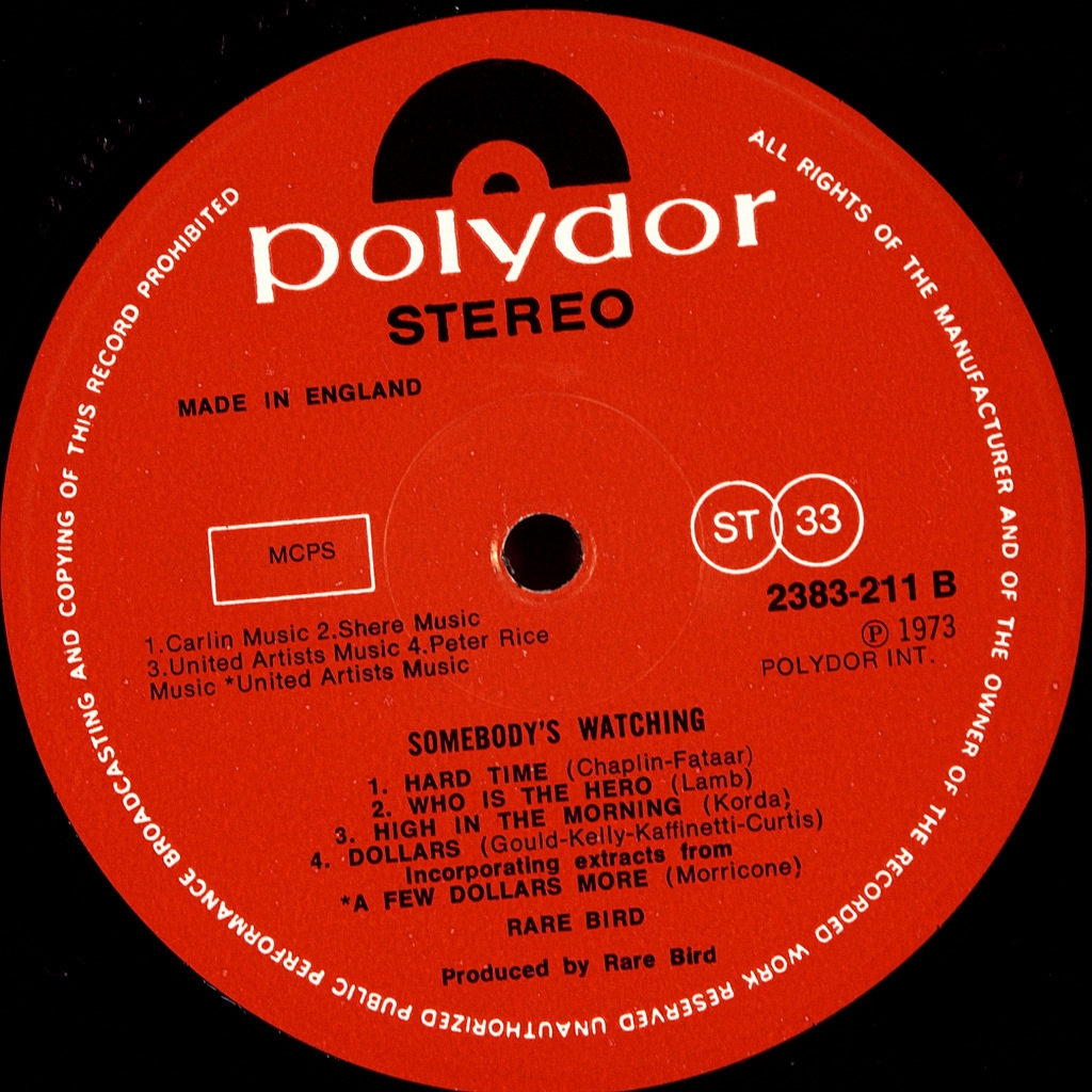 RARE BIRD -SOMEBODY'S WATCHING-1973-ПЕРВЫЙ ПРЕСС UK-POLYDOR-2383211. Очень редкий оригинал культовой прог группы .Четвертый студийный альбом Rare Bird . Опять же, произошли изменения в кадровом составе группы . Также стоит отметить присутствие Ник Поттера, басиста Van der Graaf Generator . Записи проходили в студии Polydor, Island Studios и Lansdowne Studios .