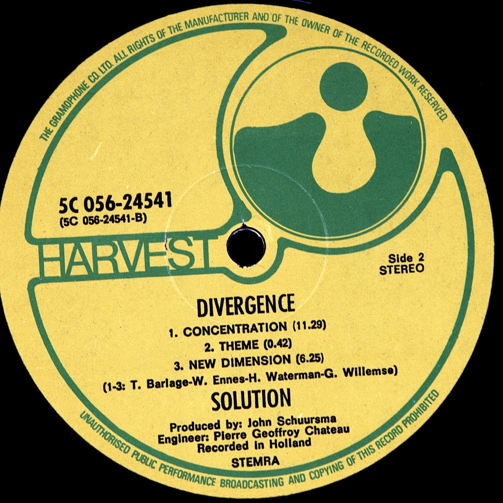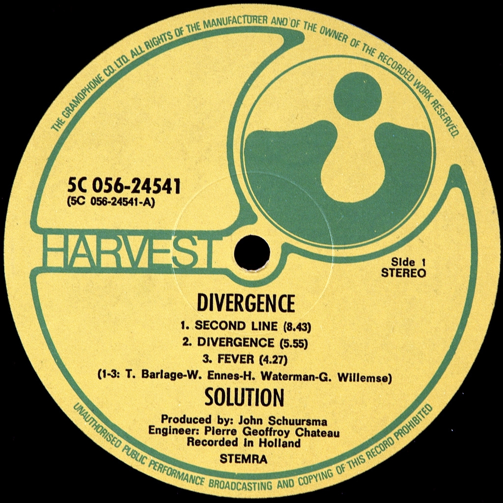SOLUTION-DIVERGENCE-1972-ПЕРВЫЙ ПРЕСС HOLLAND-HARVEST 5C056-24541. Мега редкий оригинал культового прог альбома. .Divergence - второй альбом голландской прогрессивной рок- группы Solution . Он был выпущен в 1972 году на дочерней компании EMI Harvest Records и стал лучшей прогрессивной работой в Европе а приличный тираж изданной на лейбле Harvest пластинки умножил европейскую известность голландцев. Спустя короткое время Solution уже гастролировали по Британии в качестве хедлайнеров, а на "разогреве" у них числились Badfinger и ELO...