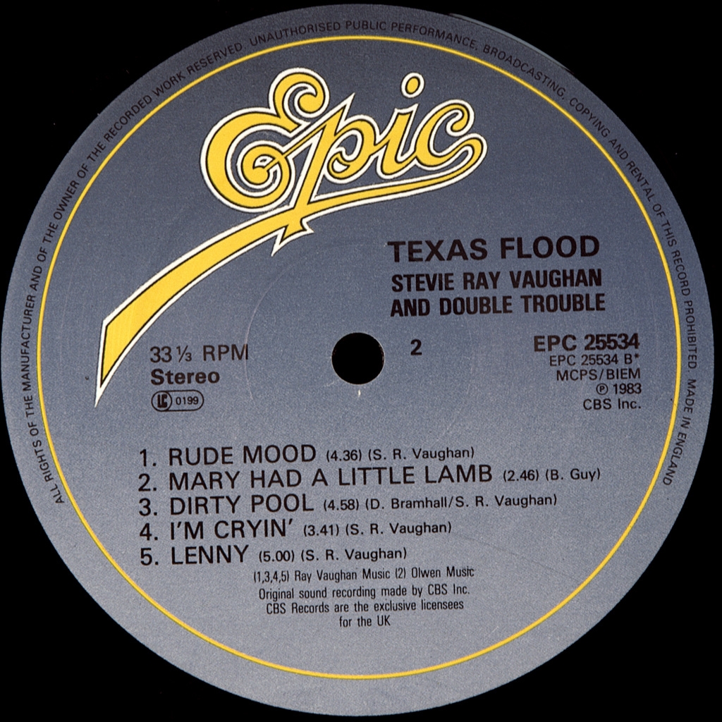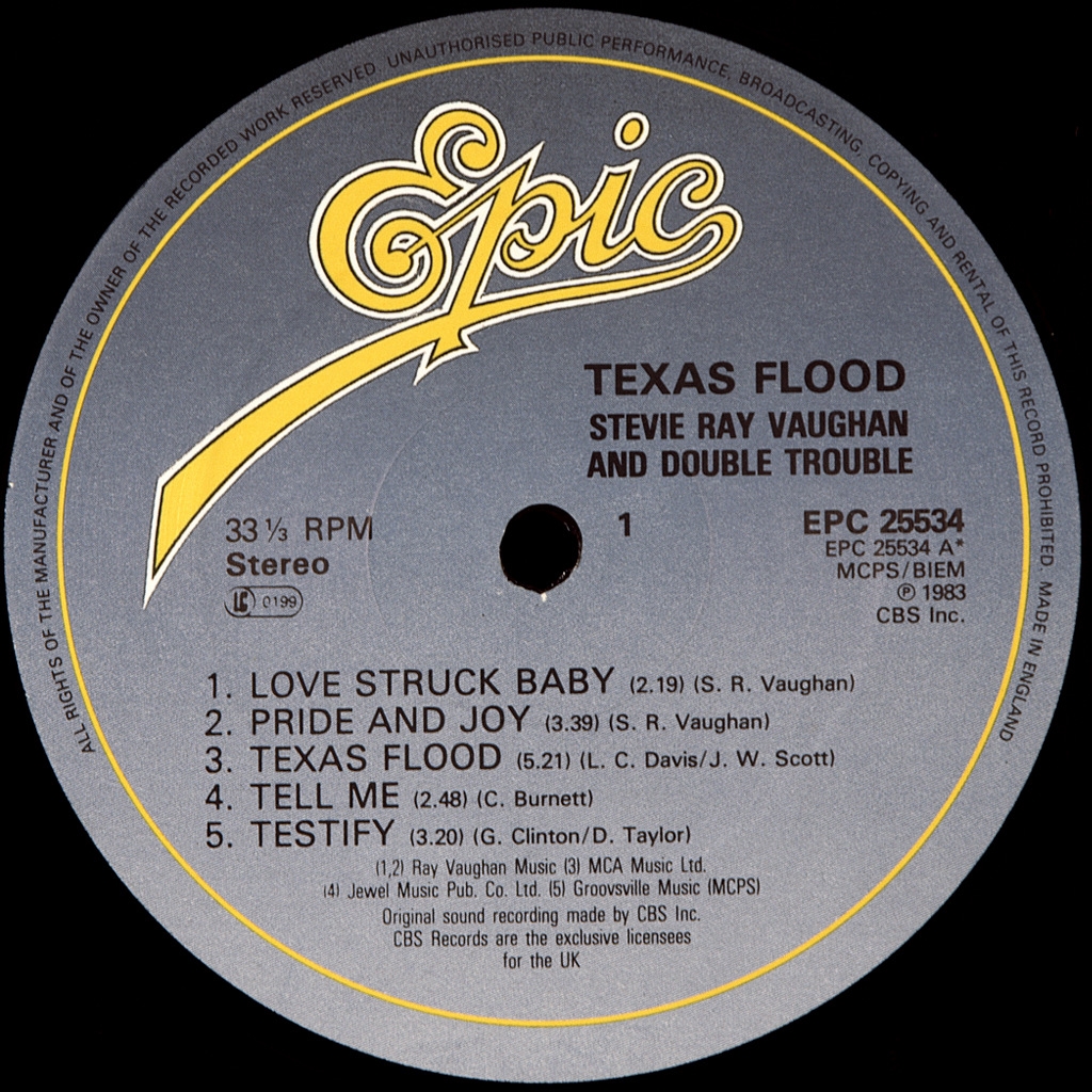 VAUGHAN, STEVE RAY AND DOUBLE TROUBLE-TEXAS FLOOD-1983-ПЕРВЫЙ ПРЕСС UK-EPIC номер EPC25534.Редкий британский оригинал. Texas Flood - первый студийный альбом американской блюзовой рок- группы Stevie Ray Vaughan и Double Trouble. Texas Flood был выпущен 13 июня 1983 года с двумя синглами с альбома «Pride and Joy» и «Love Struck Baby». «Pride and Joy» достигли пика в №20 на чарте Mainstream Rock Tracks . " Texas Flood " был номинирован на лучшее традиционное блюзовое исполнение, а " Rude Mood " - на лучшее рок-инструментальное исполнение. Альбом достигла # 38 на Billboard 200.
