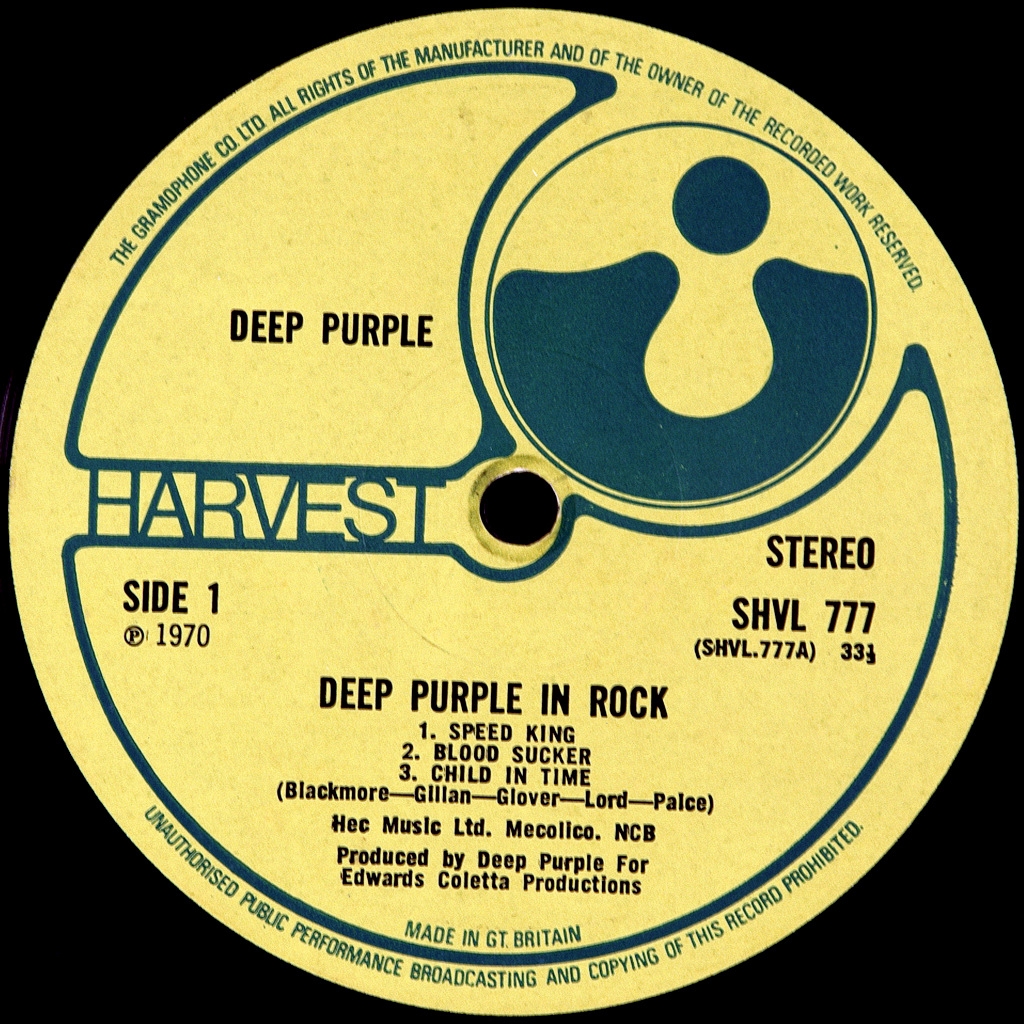 DEEP PURPLE-IN ROCK-1970- ПЕРВЫЙ ПРЕСС UK-HARVEST номер SHVL777. Матрицы A-2/B-1. Редкий британский оригинал . Deep Purple in Rock первый студийный альбом классического состава группы, известного как «Mark II». На этом альбоме стиль группы поменялся на хард-энд-хэви.