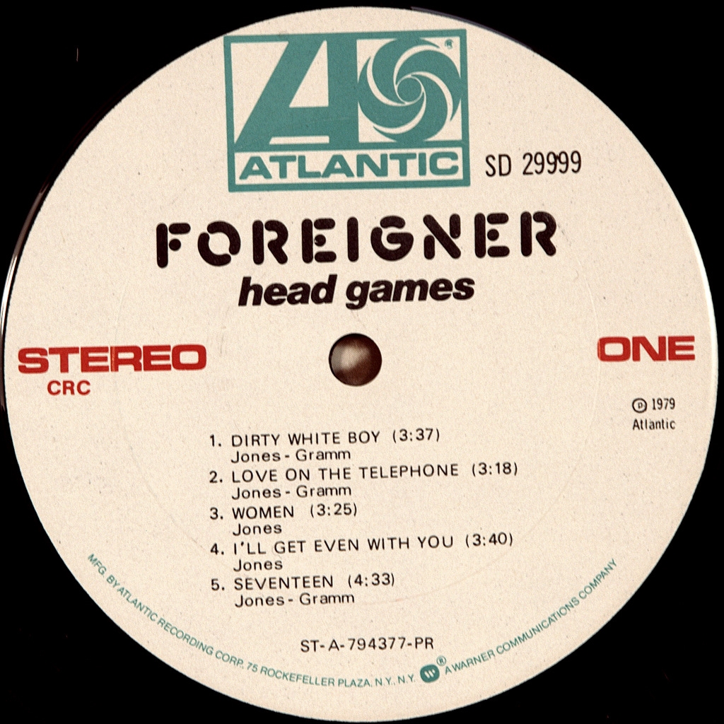 FOREIGNER-HEAD GAMES-1979-ПЕРВЫЙ ПРЕСС (КЛУБНЫЙ) USA-ATLANTIC номер SD29999. Очень редкий клубный оригинал культовой американской группы. Синглы «Dirty White Boy» и «Head Games» закрепили успех альбома. В США альбом получил статус платинового.