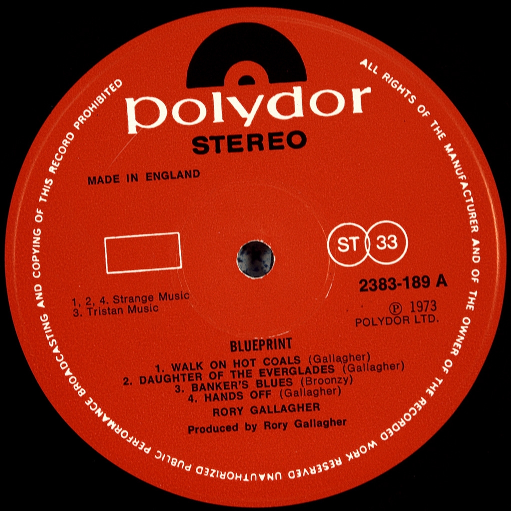GALLAGHER, RORY-BLUEPRINT-1973-ПЕРВЫЙ ПРЕСС UK-POLYDOR-2383189. Матрицы A-1/B-1 . Редкий британский оригинал блюзового гитариста из группы TASTE.Blueprint-четвертый альбом ирландского гитариста Рори Галлахера, выпущенный на виниле в 1973 году. С его первым вкусом группы и с его сольной группой до этого момента Галлахер был одним из первых гитаристов, возглавивших состав power trio. С Blueprint Галлахер впервые включил клавишника. Критики высоко оценивают альбом. Allmusic ставит 4 звезды.