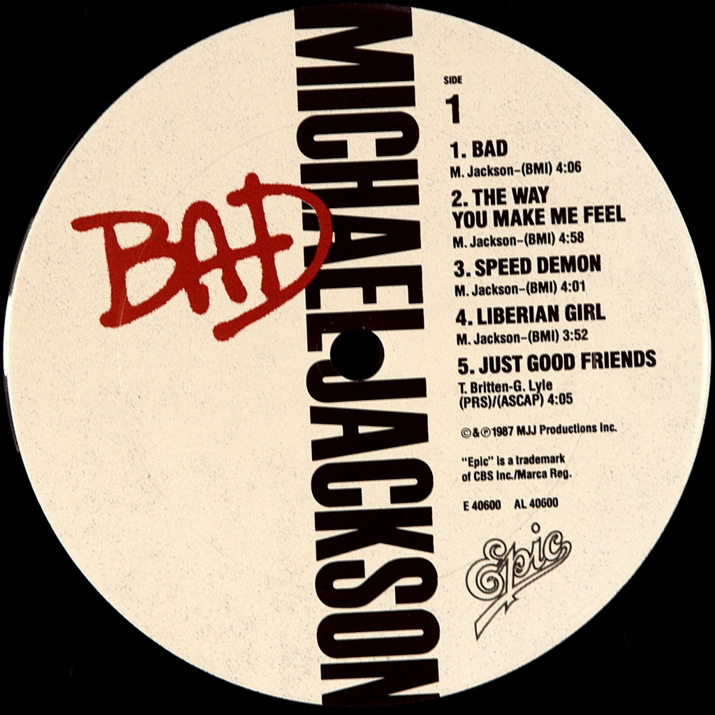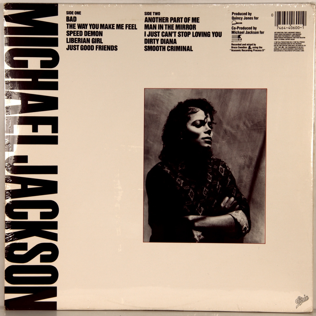 JACKSON, MICHAEL-BAD-1987-ПЕРВЫЙ ПРЕСС USA-EPIC - 4502901. Очень редкий американский оригинал короля поп музыки. Bad — седьмой студийный альбом Майкла Джексона. Был выпущен на лейбле Epic Records 31 августа 1987 года, продюсерами пластинки стали сам Джексон и Куинси Джонс — Bad стал их третьей и последней совместной работой. Песни на альбоме выдержаны в жанрах фанка, ритм-н-блюза, госпела, поп-рока, хард-рока, свинга и блюза. Джексон написал девять из одиннадцати песен, попавших в окончательный список композиций. В сентябре 1987 года Bad дебютировал на вершинах американского чарта Billboard 200 и британского UK Albums Chart, всего пластинка возглавила хит-парады 25-ти стран мира. В период с 1987 по 1989 год . Мировые продажи пластинки по разным источникам составляют от 30 до 45 миллионов экземпляров. В 1988 и 1990 году Bad получил две статуэтки «Грэмми».