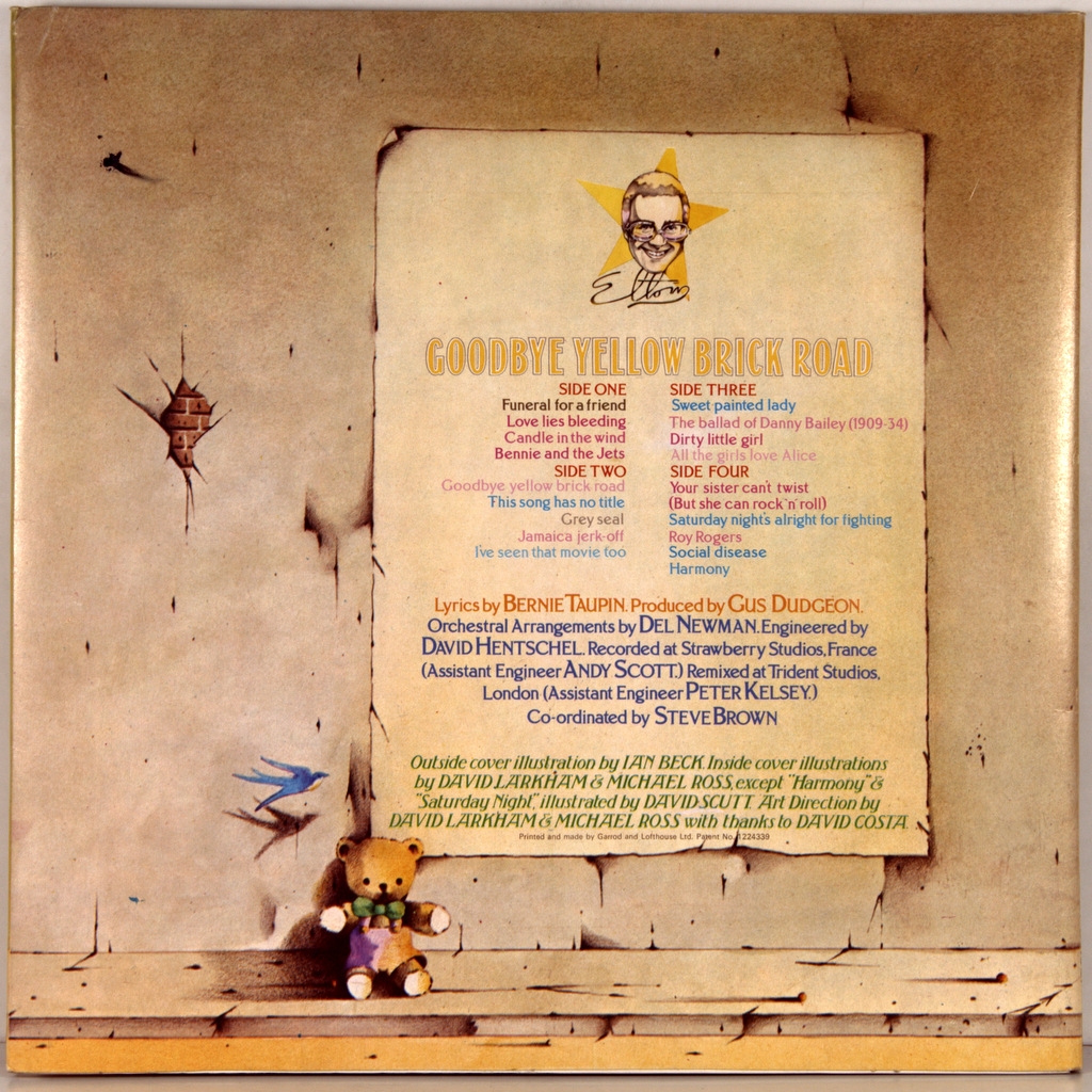 JOHN, ELTON-GOODBYE YELLOW BRICK ROAD (2LP)-1973-ПЕРВЫЙ ПРЕСС UK-DJM - DJLPD1001 Goodbye Yellow Brick Road стал наиболее успешным в коммерческом отношении альбомом в карьере певца. Он занял первое место в чартах США и Великобритании и получил сертификат платинового диска от Британской ассоциации производителей фонограмм и платинового семь раз — от Американской ассоциации звукозаписывающих компаний. Его мировой тираж составляет свыше 30 миллионов экземпляров.