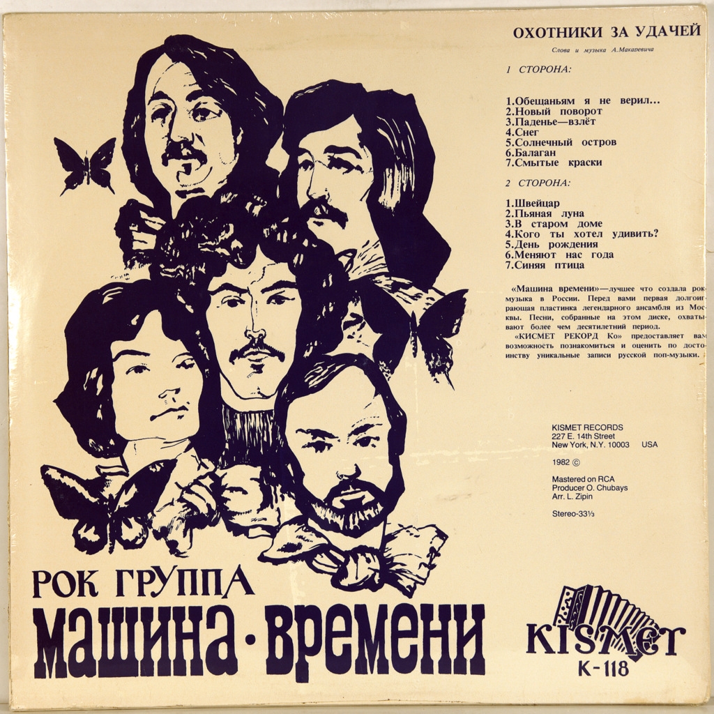 МАШИНА ВРЕМЕНИ-1982-ОХОТНИКИ ЗА УДАЧЕЙ-ПЕРВЫЙ ПРЕСС USA-KISMET-K-118. Мега редкий оригинал культовой советской группы.«Охотники за удачей» - первая виниловая пластинка «Машины времени», и является, по сути, сборником песен, записанных группой в 1970-е годы. Выпущена была в 1982-м году в США фирмой «Kismet». На пластинке «Машины Времени, выпущенной в 1982-м году, имеется такой текст: «Машина времени» - лучшее что создала рок-музыка в России. Перед вами первая долгоиграющая пластинка легендарного ансамбля из Москвы. Песни, собранные на этом диске, охватывают более чем десятилетний период. «КИСМЕТ РЕКОРД Ко» предоставляет вам возможность познакомиться и оценить по достоинству уникальные записи русской поп-музыки.