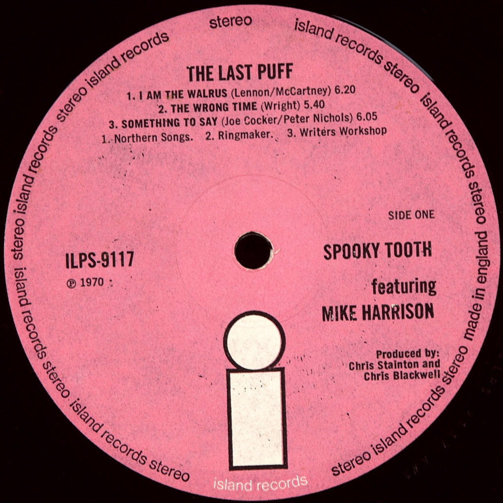 SPOOKY TOOTH-THE LAST PUFF-1970-ПЕРВЫЙ ПРЕСС UK-ISLAND- ILPS9117 Матрицы A//1/B//1 Стампера 1 1/1 2(Мечта!) .Очень редкий британский оригинал культовой группы. The Last Puff-альбом британской рок-группы Spooky Tooth, выпущенный в 1970 году. Впервые в своей истории группа была объявлена как"Spooky Tooth featuring Mike Harrison". Альбом был выпущен после ухода солиста и основного автора песен Гэри Райта . Райт покинул группу в начале 1970 года, после выхода альбома Ceremony в декабре 1969 года."Something To Say" был написан в соавторстве с Джо Кокером и позже появится на его альбоме 1972 года Joe Cocker . Участники группы Grease Генри Маккалоу, Крис Стейнтон и Алан Спеннер присоединились к оригинальным участникам Spooky Tooth Харрисону, Гросвенору и Келли, чтобы завершить работу над альбомом. Участники группы Grease достигли международной известности годом ранее, поддержав Джо Кокера в Вудстоке. альбом был спродюсирован совместно Стейнтоном и Крисом Блэквеллом. Альбом высоко оценен, Allmusic - 5 звезд, 46 место в Billboard 200.