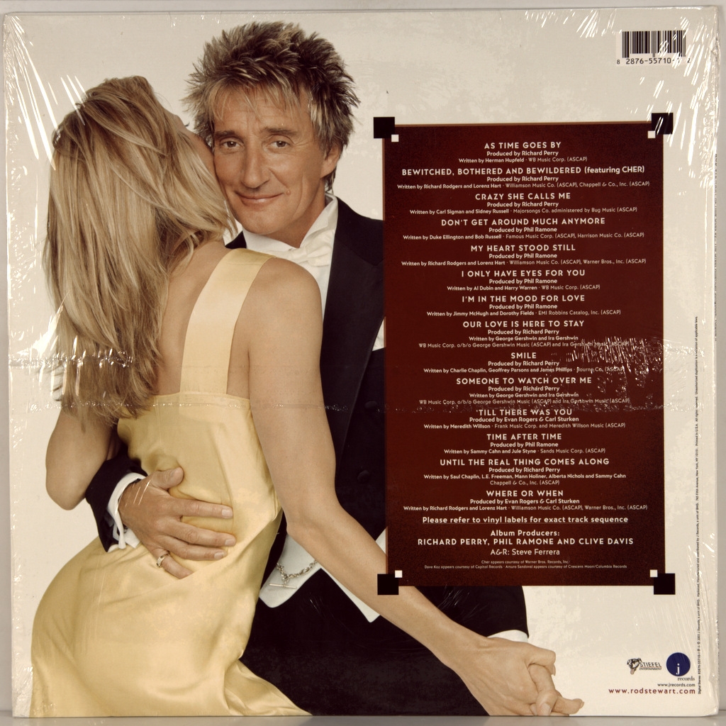 STEWART, ROD-AS TIME GOES BY... THE GREAT AMERICAN SONGBOOK: VOLUME II-2003-ПЕРВЫЙ ПРЕСС USA-BMG-8287655710-1. Мега редкий двойной оригинал культового альбома легенды британской сцены. В 2002 году Род Стюарт выпустил It Had To Be You … первый альбом из серии The Great American Songbook, в которой он взялся последовательно перепевать самые знаменитые джазовые стандарты 1930-60-х годов XX века. Все четыре альбома имели огромный коммерческий успех в разных странах мира, но музыкальной критикой были оценены сдержанно. В числе хит-синглов, отсюда вышедших — «These Foolish Things», «They Can’t Take That Away From Me», «Bewitched, Bothered And Bewildered» (дуэт с Шер), «Time After Time», «What A Wonderful World» .Volume II вышел в 2003 став моментально мультиплатиновым и по итогам года разместился на 2 месте в США и 4 место а Великобритании.