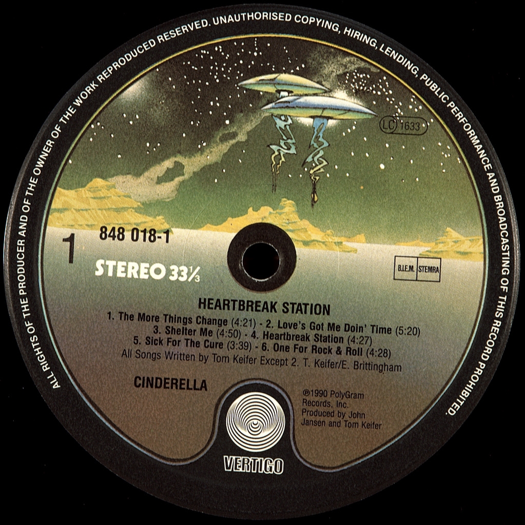 CINDERELLA-HEARTBREAK STATION-1990-ПЕРВЫЙ ПРЕСС EU- HOLLAND-MERCURY-8848018-1. Редкий европейский оригинал . Heartbreak Station - третий альбом студийный альбом американского глэм-группы Cinderella, был издан в 1990 году на лейбле Mercury Records. Диск стал хитом в США — он занял 19-е место в чарте Billboard и преодолел барьер в миллион проданных копий уже к концу года. Несмотря на это, он не добился успеха, сравнимого с прошлыми работами группы: Night Songs и Long Cold Winter, которые разошлись тиражом свыше трёх миллионов. Также, Heartbreak Station попал только в Top-20 хит-парада США, в отличие от своих предшественников которые были в Топ-10.