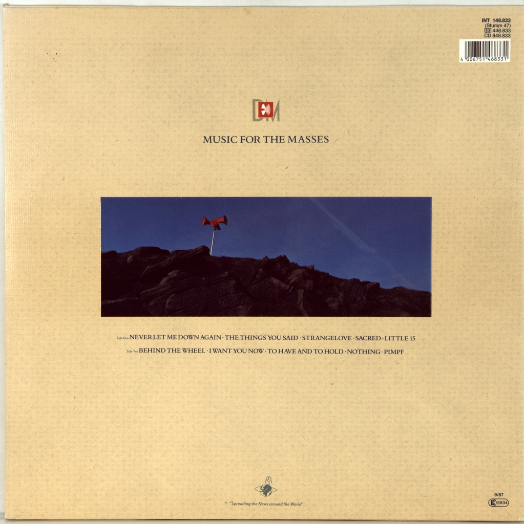DEPECHE MODE-MUSIC FOR MASSES-1987-ПЕРВЫЙ ПРЕСС GERMANY-MUTE-- INT146833. Редкий немецкий оригинал на цветном виниле. Music for the Masses— шестой студийный альбом британской группы Depeche Mode, выпущенный 28 сентября 1987 года. Пластинка привела группу к основному успеху в США в первый раз после пластинки Some Great Reward. Альбом отличается менее экспериментальным звучанием, однако Алан Уайлдер при записи пластинки уделил больше внимания аранжировкам и семплам. Также в композициях альбома можно услышать множество полноценных гитарных партий. Звук и стиль на Music for the Masses значительно отличается от предыдущих работ Depeche Mode — песни имеют тревожное и меланхоличное звучание. Music for the Masses привёл к всплеску популярности Depeche Mode в США. Композиции «Strangelove», «Never Let Me Down Again», «Behind the Wheel» и «Little 15» стали мировыми хитами. Альбом занял высокие строчки в чартах UK- 10 место , Германия - 2 место, США - 30 место.