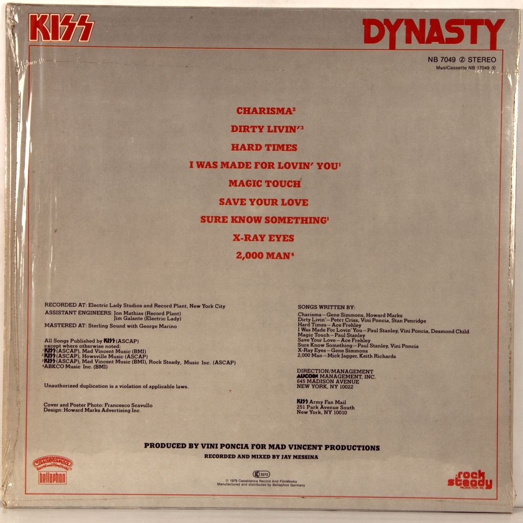 KISS-DYNASTY-1979-ПЕРВЫЙ ПРЕСС (КРАСНЫЙ ВИНИЛ) GERMANY-CASABLANCA- NB7049.Очень редкий оригинал красном виниле в полной комплектации (большой плакат 90х60 см). Культовый альбом Dynasty - седьмой студийный альбом американской хард-рок-группы Kiss, вышедший в 1979 году на лейбле Casablanca. Альбом и последующий концертный тур ознаменовали «возвращение Kiss» в верхние строчки хит-парадов по обе стороны атлантики.