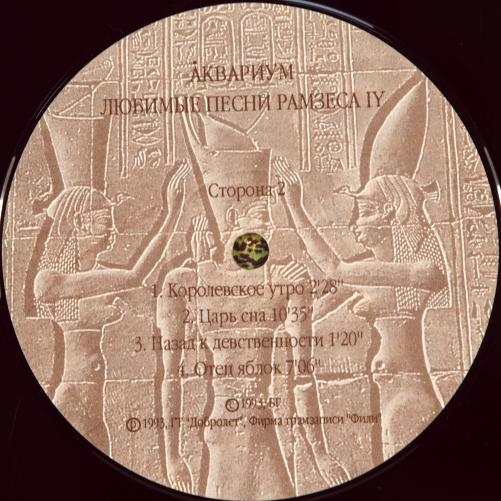 АКВАРИУМ-ЛЮБИМЫЕ ПЕСНИ РАМЗЕСА IV-1993-ПЕРВЫЙ ПРЕСС RUSSIA-FEELEE-FL3022. Очень редкий оригинал единственного издания на виниле. «Любимые песни Рамзеса IV» — восьмой «естественный» альбом группы «Аквариум», первый альбом (после выпуска альбома «Равноденствие»), выпущенный под названием «Аквариум». Согласно официальной дискографии группы относится к категории "естественные альбомы".