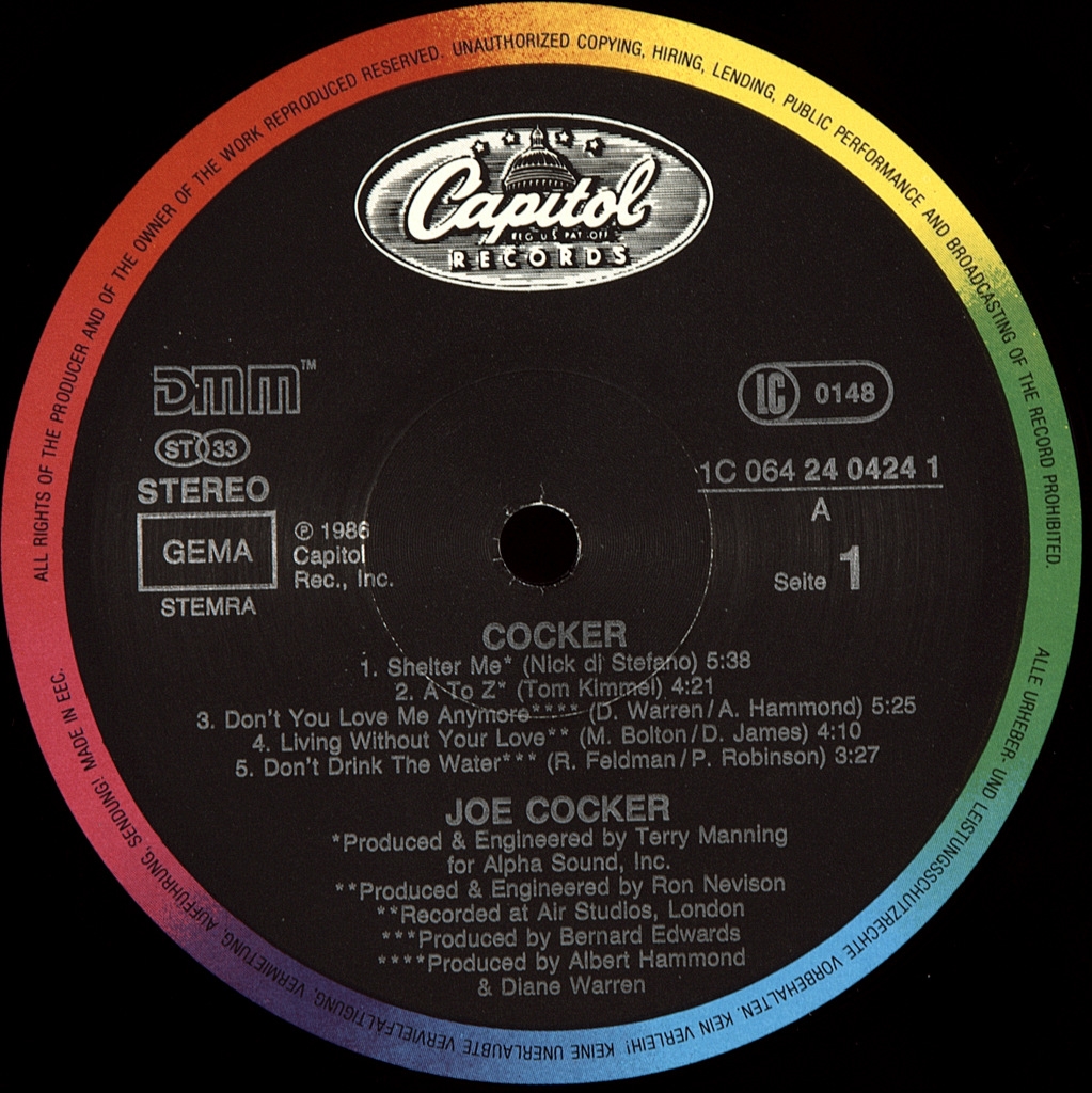 COCKER, JOE- COCKER-1986-ПЕРВЫЙ ПРЕСС EEC-CAPITOL -064 24 0424 1. Cocker - десятый студийный альбом Joe Cocker, выпущенный в апреле 1986 года, его второй альбом на лейбле Capitol. Он включает в себя хит-синглы " You Can Leave Your Hat On " и "Don't You Love Me Anymore", первый из которых стал популярным после его использования в знаменитой сцене стриптиза в фильме 9 1/2 Weeks . Выпущенная как сингл, версия песни Cocker достигла 35-го места в Billboard Hot Mainstream Rock Tracks.