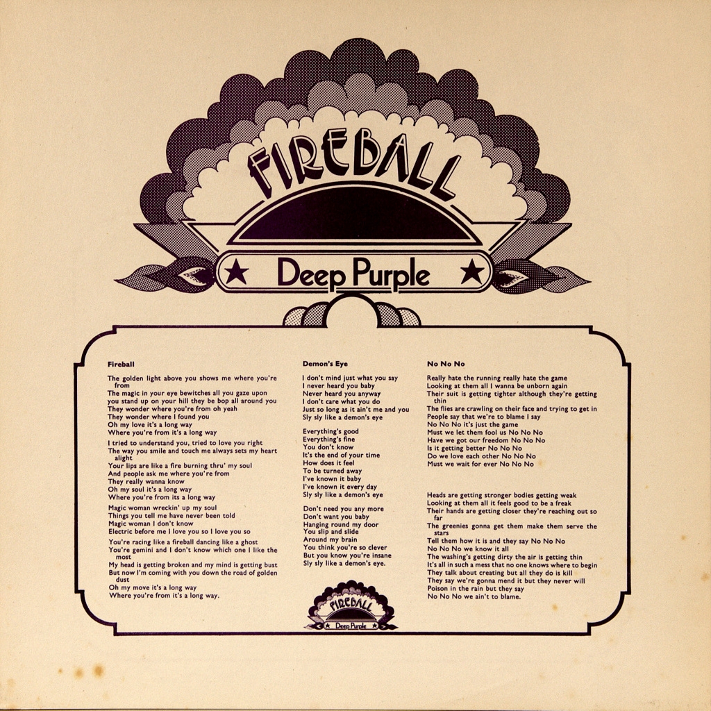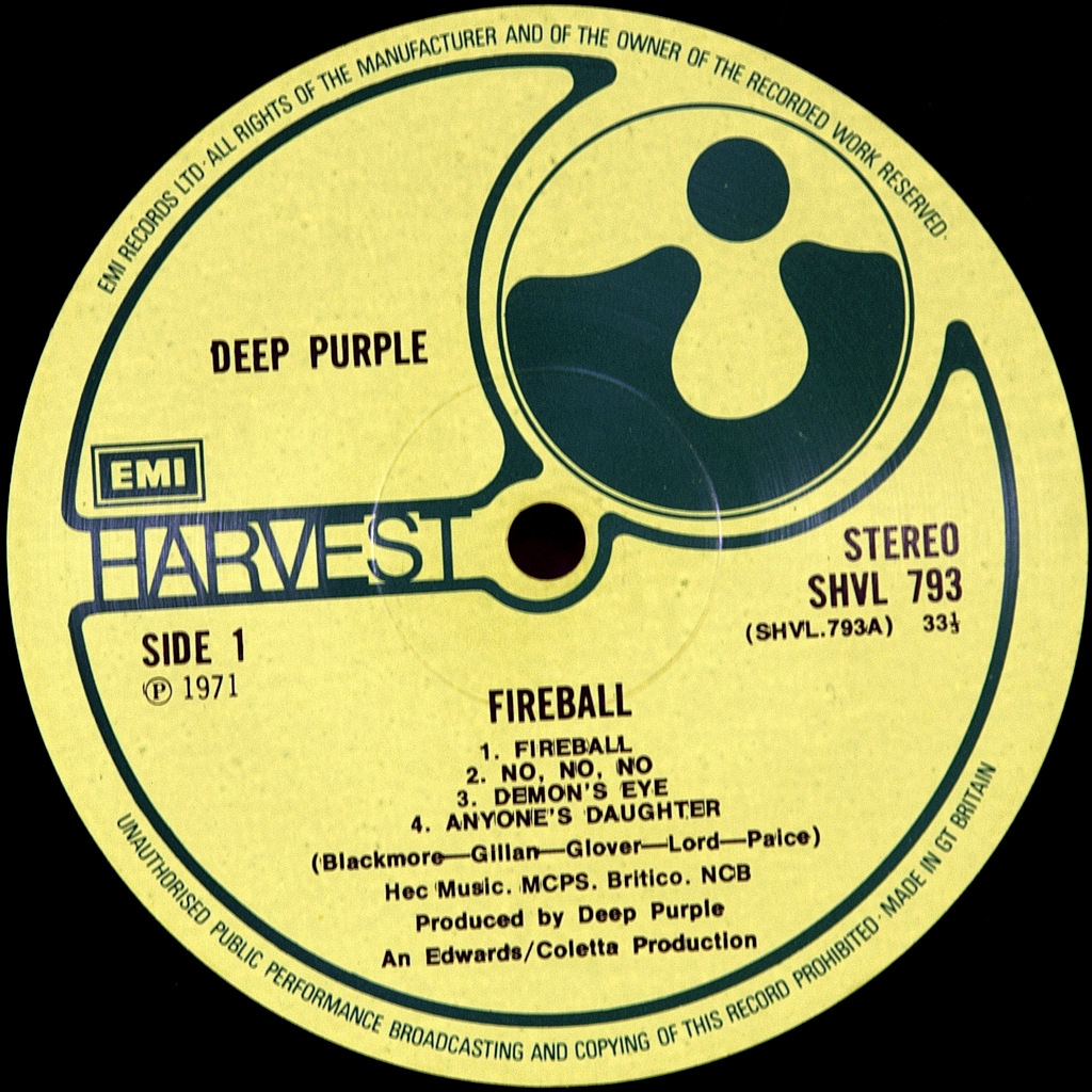 DEEP PURPLE-FIREBALL-1971-ПЕРВЫЙ ПРЕСС (ПЕРЕХОД 1974) UK-HARVEST- SHVL793 Матрицы A-2U/B-3U . Очень редкое раннее издание культового альбома. Fireball — пятый студийный альбом британской рок-группы Deep Purple. Записан в период с сентября 1970 до июня 1971 года, выпущен в сентябре 1971 года на лейбле Harvest Records. Альбом записывался в De Lane Lea Studios (как и его предшественник). По сравнению с Deep Purple in Rock, этот альбом был записан в более экспериментальном стиле. Allmusic назвал его одним из четырёх важнейших альбомов группы, наряду с Machine Head, In Rock и Burn. Йэн Гиллан, в отличие от остальных членов группы, считает данный альбом классикой Deep Purple. Тем не менее, он заметил, что включение в альбом «Anyone’s Daughter» (в стиле кантри и с шутливой лирикой) было весёлой, но ошибкой («A good bit of fun, but a mistake»). Джон Лорд выделял несколько треков альбома, такие как «No No No» и «Fools», и особенно отметил игру Пэйса в заглавной композиции. Трек «Strange Kind of Woman», выпущенный синглом в феврале 1971 года и поднявшийся до восьмого места в британских чартах. В первую неделю было продано 20 000 копий. Альбом высоко был оценен публикой и критиками, став мультизолотым по обе стороны атлантики.