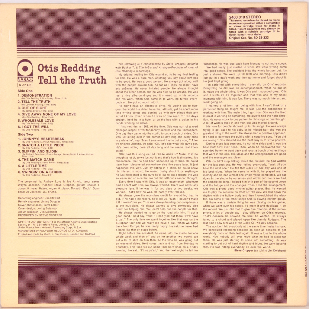 OTIS REDDING-TELL THE TRUTH-1970-ПЕРВЫЙ ПРЕСС UK-ATCO-2400018. Матрицы A-1/B-1. Редкий британский оригинал от блюзового мэтра 60-х. Tell the Truth-четвертый посмертный студийный альбом Отиса Реддинга (его десятый студийный альбом в целом), включающий песни, записанные в 1967 году. Альбом высоко оценен , по итогам года Billboard поставил его на 26 место, и 200 место в иерархии альбомов R and B.