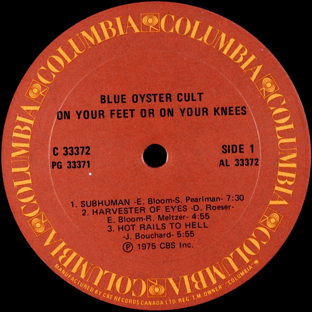 BLUE OYSTER CULT- ON YOUR FEET OR ON YOUR KNEES (2LP'S) -1975-ПЕРВЫЙ ПРЕСС CANADA-CBS-PG33371. Канадский оригинал американской хард-блюзовой группы. On Your Feet or on your Knees - первый концертный альбом американской рок-группы Blue Öyster Cult, выпущенный 27 февраля 1975 года компанией Columbia Records. На альбоме представлены три песни с каждого из первых трех студийных альбомов группы, две кавер-версии ("i'an't Got You", хотя и с измененными текстами, и "Born to Be Wild"), а также один ("Buck'S Boogie") оригинальный инструментальный инструмент, который по сей день остается главным продуктом концертов группы. Эти 12 песен включают выступления в Академии музыки в Нью-Йорке, Paramount Theatre в Портленде, Paramount Theatre в Сиэтле, The Show Palace в Финиксе, the Long Beach Arena, The P. N. E. Coliseum в Ванкувере и The Capitol Theatre в Нью-Джерси, хотя неясно, какие песни пришли с каких площадок и в какие даты. Надпись на обложке , разработанная Джерардом Уэртой, также использовавшаяся на коробочном наборе 2012 года, была одним из первых логотипов "хэви - метал". Альбом занял 22-е место в чарте Billboard 200, что сделало его самым высокооплачиваемым альбомом группы в Соединенных Штатах