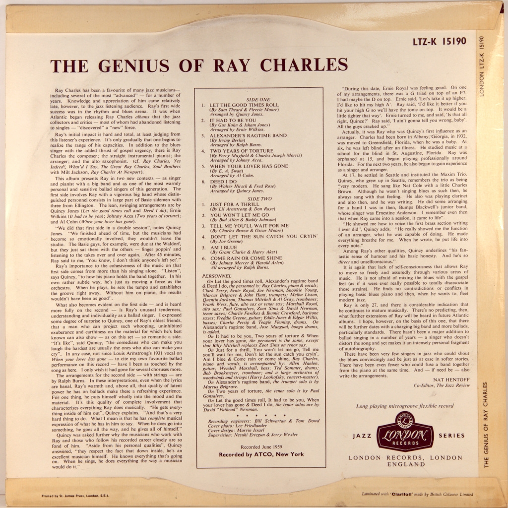 CHARLES, RAY-GENIUS OF-1960-первый пресс (MONO) uk-london- LTZK15190HAK2284 матрицы A-1B/B-1B. Редкий британский оригинал легенды джазовой сцены. The Genius of Ray Charles-это альбом Рэя Чарльза 1959 года, выпущенный в октябре лейблом Atlantic Records, седьмой альбом с момента дебюта Рэя Чарльза в 1957 году. Альбом состоит из свингующей поп-музыки с аранжировками биг-бэнда. Она включает в себя первую половину биг-бэнд песни и вторая половина строкипокрытием баллады. гений Рэя Чарльза продаются более чем 500 000 копий и занимает 17 место в чарте Billboard 200.