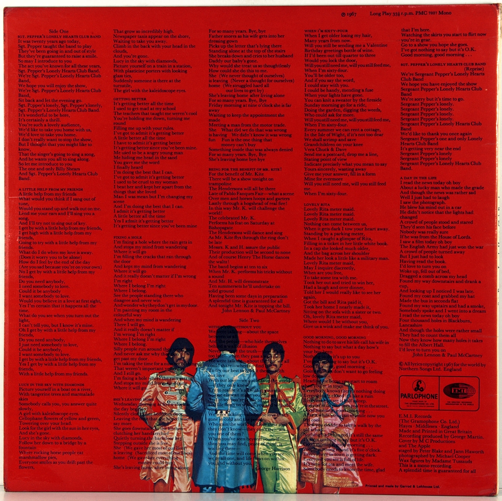 BEATLES-SGT PEPPER'S LONELY HEARTS CLUB BAND-1967-ПЕРВЫЙ ПРЕСС(МОNО) UK-PARLOPHONE-PMC7027 матрицы A1/B1 Первый пресс моно , 1 июня 1967 года. Sgt. Pepper’s Lonely Hearts Club Band - восьмой альбом британской рок-группы The Beatles. Многие критики называют Sgt. Pepper’s Lonely Hearts Club Band в числе самых влиятельных рок-альбомов всех времён. В частности, он был назван лучшим альбомом всех времён и народов по версии журнала Rolling Stone (2003). Согласно голосованию, проведённому радиостанцией Би-би-си среди своих слушателей к пятидесятилетию британских чартов в 2006 году, альбом занимает первое место по популярности в Великобритании. Sgt. Pepper’s Lonely Hearts Club Band занимает девятое место в списке альбомов — мировых лидеров продаж с результатом в более чем 30 миллионов экземпляров.Альбом был записан в течение 129-дневного периода, начавшегося 6 декабря 1966 года, и выпущен 1 июня 1967 года в Великобритании (2 июня того же года альбом появился в продаже в США). Пластинка выиграла 4 премии Грэмми в следующих номинациях: 1.Альбом года, 2.Лучшее современное исполнение группой, 3.Лучшая звукорежиссёрская работа альбома, 4.Лучшая обложка альбома.