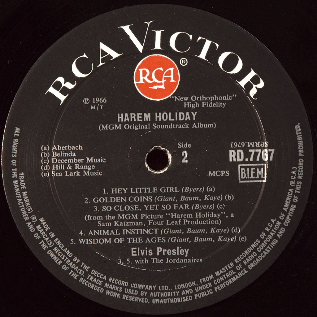 PRESLEY, ELVIS- HAREM HOLIDAY-1966-ПЕРВЫЙ ПРЕСС (MONO) UK-RCA-RD-7767. Редкий британский оригинал короля рок-н-ролла. Harum Scarum - студийный альбом Элвиса Пресли, представлявший собой саундтрек к одноимённому фильму с его участием («Каникулы в гареме», вышедшему на экраны в 1965 году). Альбом поступил в продажу 3 ноября 1965 года. В США он достиг 8 места в альбомном чарте Billboard Top LP’s (американского журнала «Билборд»).