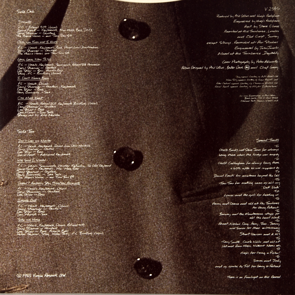 COLLINS, PHIL-NO JACKET REQUIRED-1985-ПЕРВЫЙ ПРЕСС UK -VIRGIN-V2345. Редкий британский оригинал. No Jacket Required — третий студийный альбом британского певца и композитора Фила Коллинза. Выпущен 25 января 1985 года. В записи альбома приняли участие такие музыканты, как Хелен Терри, Питер Гэбриэл и Стинг. Диск стал очень успешным, был позитивно принят как критиками, так и слушателями, что отразилось в награждении No Jacket Required премией «Грэмми» в номинациях «Альбом года» и «Лучшее мужское вокальное поп-исполнение». Стивен Холден (англ. Stephen Holden) из The New York Times сказал, что Коллинз «совершил тихую революцию и расширил роль ударных при создании поп-музыки». А обозреватель журнала Rolling Stone Дэвид Фрике отметил, что: «Как и его ранние альбомы Face Value и I Must Be Going!, альбом No Jacket Required не является альбомом, который ждёт, чтобы понравиться».Альбом стал самым коммерчески успешным у Фила Коллинза, занял первые строчки чартов по многих странах — включая США (где возглавлял чарты на протяжении семи недель), Великобританию и Канаду. Альбом No Jacket Required получил Бриллиантовый сертификат Американской ассоциации звукозаписывающих компаний", был продан тиражом более двух миллионов экземпляров в Великобритании, став там шестикратно платиновым.