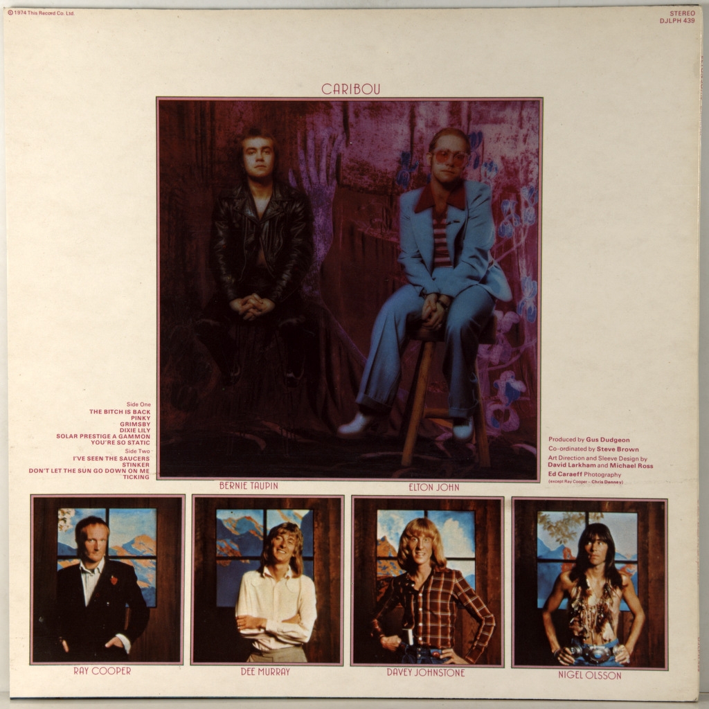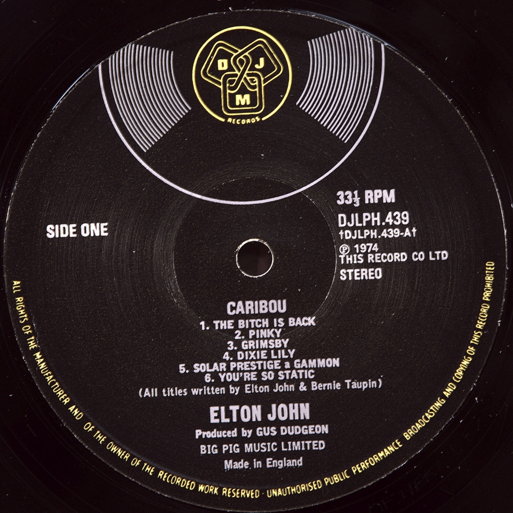 JOHN, ELTON - CARIBOU-1974-ПЕРВЫЙ ПРЕСС UK-DJM-DJLPH439. Редкий британский оригинал мэтра британской сцены. Caribou - восьмой студийный альбом Элтона Джона, выпущенный в 1974 году. Альбом занял четвертое место в хит-параде в США и третий в Великобритании. Альбом содержит синглы "Don't Let the Sun Go Down on Me", которые достигли 16-го места в британском чарте синглов и второго места в США, а также "The Bitch Is Back", который достиг 15-го места в Великобритании и четвертого места в США. Оба сингла заняли первое место в Канаде в национальном чарте RPM 100 Top Singles Chart, как и сам альбом. Альбом был встречен теплыми отзывами о его выпуске, и отзывы legacy не считают эту пластинку одной из лучших работ Джона с его пикового периода начала 1970-х годов. Однако альбом имел коммерческий успех и был сертифицирован как дважды платиновый в США, а также получил золотую сертификацию в Великобритании. Альбом был номинирован на премию "Грэмми" в номинации "Альбом года" на 17-й ежегодной премии "Грэмми".