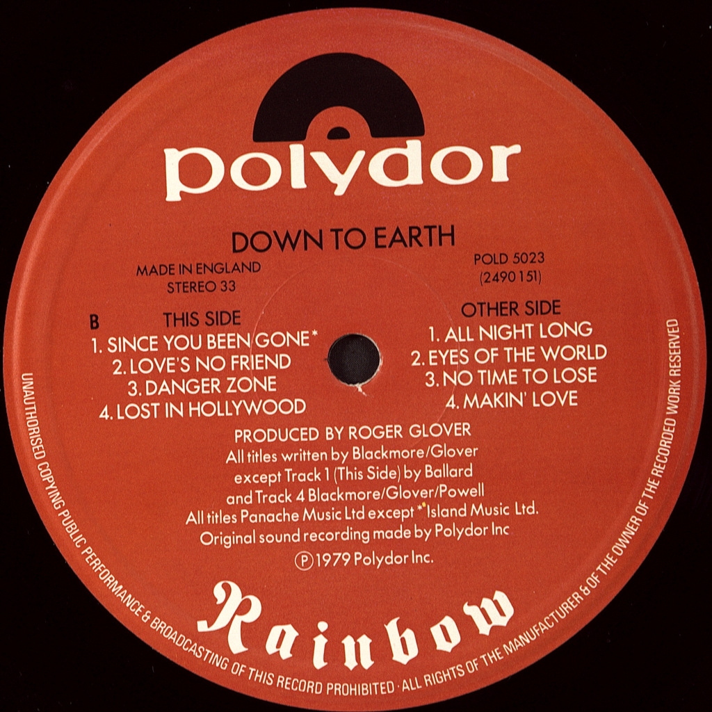 RAINBOW-DOWN TO EARTH-1979-ПЕРВЫЙ ПРЕСС UK-POLYDOR -POLD5023. Матрицы A-1/B-1. Редкий британский оригинал культового альбома. Down to Earth - четвертый студийный альбом британской хард-рок-группы Rainbow. Это их последний альбом с барабанщиком Кози Пауэллом и единственный альбом с вокалистом Грэмом Боннетом. Выпущенный в 1979 году, он содержит первый хитовый сингл Rainbow "Since You Been Gone", отмечающий более коммерческое направление звучания группы. В 2005 году Down to Earth занял 431-е место в списке 500 величайших рок-и метал-альбомов всех времен по версии журнала Rock Hard Magazine
