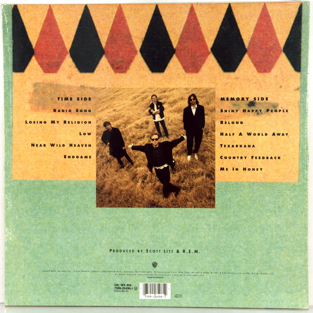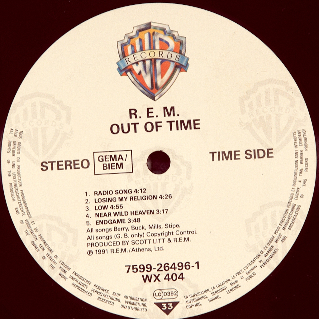 R.E.M.-OUT OF TIME-1991-ПЕРВЫЙ ПРЕСС UK/EU GERMANY- WARNER-7599-26496-1. Редкий оригинал культового альбома. Out of Time - седьмой студийный альбом американской альтернативной рок-группы R. E. M., выпущенный 12 марта 1991 года компанией Warner Bros. Записи. С Вне времени Статус R. E. M. вырос из культовой группы в массовый международный акт. Пластинка возглавила чарты продаж альбомов как в Соединенных Штатах, так и в Великобритании, проведя 109 недель в американских чартах альбомов и наслаждаясь двумя отдельными периодами на вершине, а также проведя 183 недели в британских чартах и одну неделю на вершине. Альбом разошелся тиражом более четырех с половиной миллионов экземпляров в США и более 18 миллионов экземпляров по всему миру. В 1992 году альбом получил три премии "Грэмми": одну как лучший альбом альтернативной музыкии две за первый сингл"Losing My Religion."