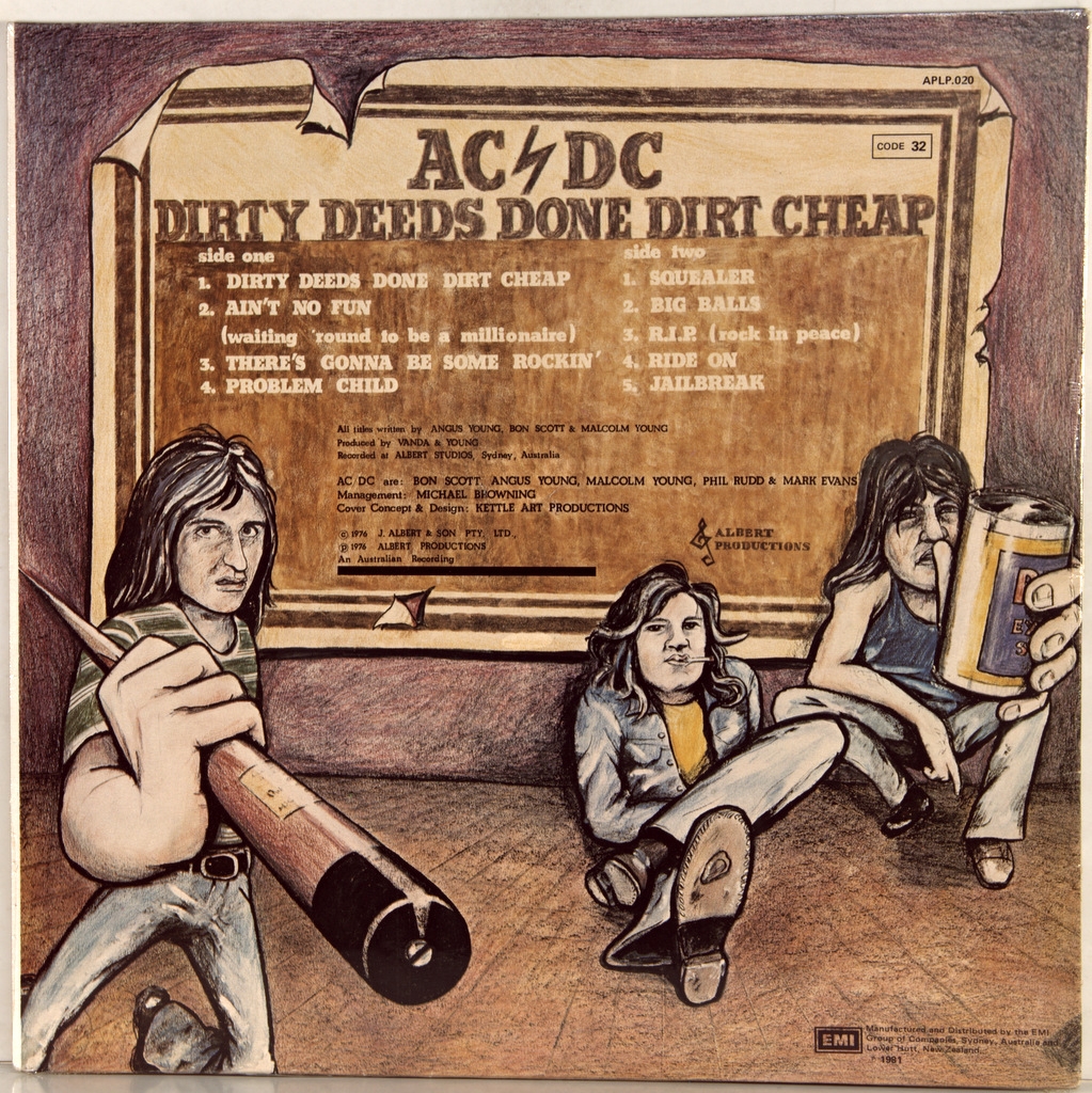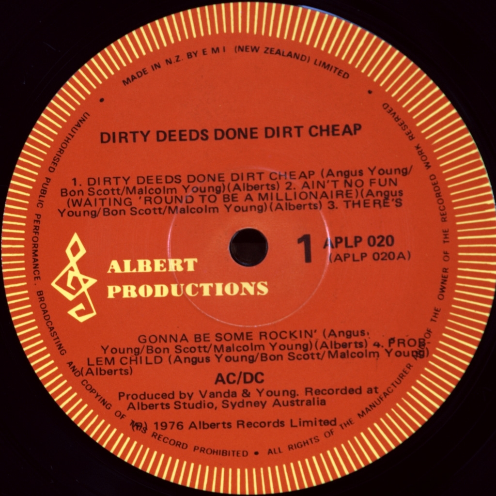 AC/DC-DIRTY DEEDS DONE DIRT CHEAP-1976--ОРИГИНАЛЬНЫЙ ПРЕСС 1981 NEW ZEALAND-ALBERT PRODUCTIONS-APLP020. Очень редкий второй новозеландский пресс культовой австралийской группы. Альбом взорвал музыкальный рынок заняв в Австралии 4 место ,а в США по версии Billboard 200 - 3 место.