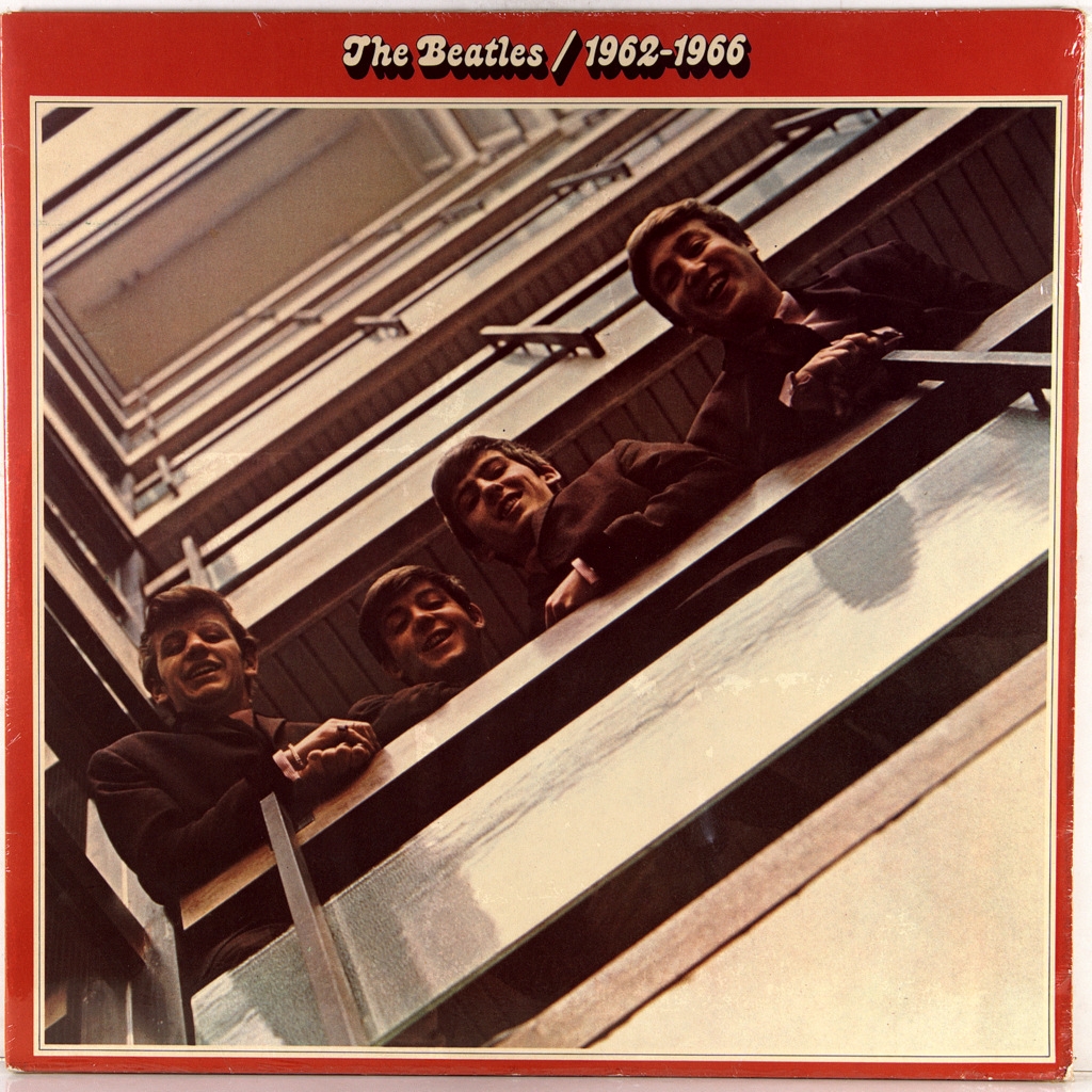 BEATLES-1962-1966-ПЕРВЫЙ ПРЕСС -1973-UK-APPLE-PCSP717/OC192o05307-8. Сборник лучших песен группы 1962-66 годов. Первое издание было на черном виниле, позднее был выпуск на цветном виниле красного цвета. 1962-1966 (также известный как "Красный альбом") - сборник хитов английской рок-группы The Beatles, охватывающий годы, указанные в названии. Выпущенный вместе со своим аналогом 1967-1970 годов ("Голубой альбом") в 1973 году, двойной альбом достиг 3-го места в Соединенном Королевстве. В Соединенных Штатах он возглавил чарт альбомов Cash Box и занял 3-е место в чарте Billboard Top LPs & Tape, в то время как в 1967-1970 годах занял первое место. Альбом был переиздан в сентябре 1993 года на компакт-диске, заняв 3-е место в Великобритании.