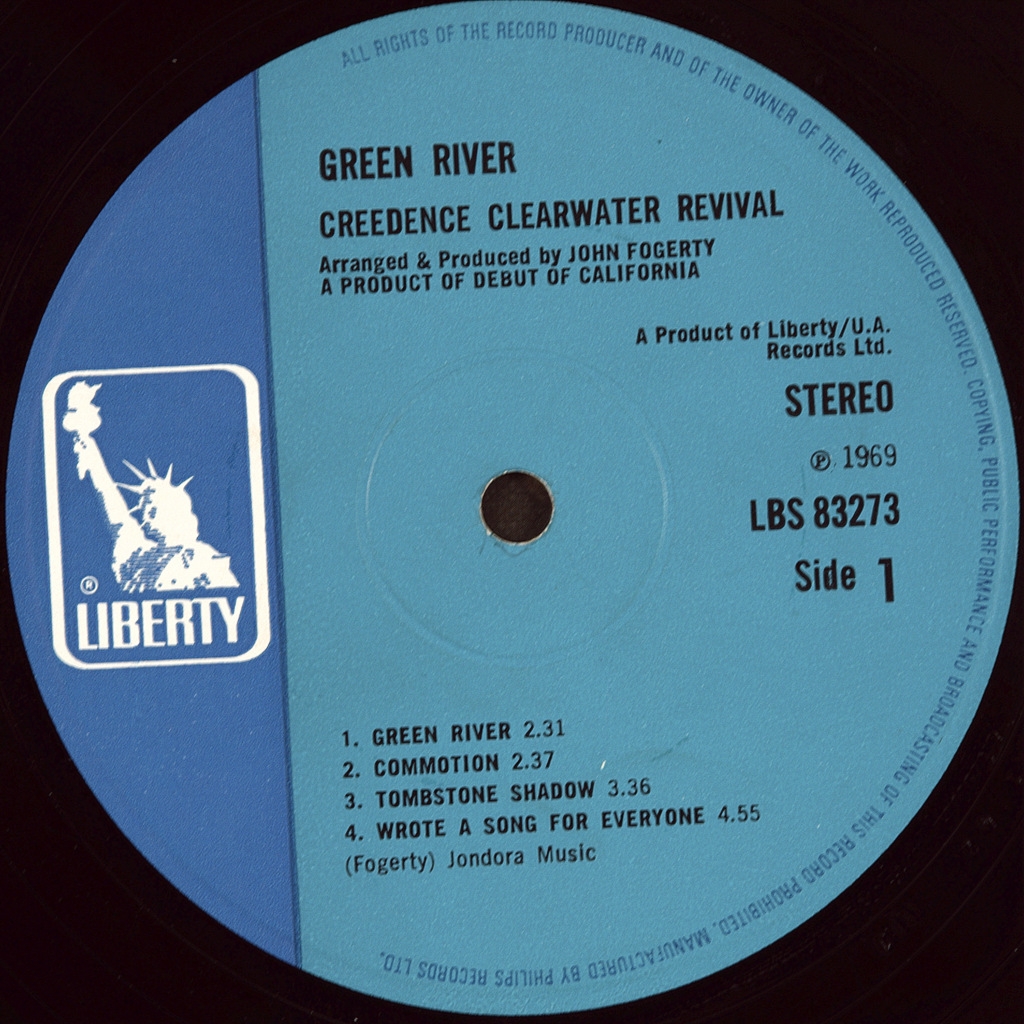 CREEDENCE CLEARWATER REVIVAL-GREEN RIVER-1969-ПЕРВЫЙ ПРЕСС UK-LIBERTY- LBS83273 Редкий британский оригинал культового альбома. Green River — третий студийный альбом американской рок-группы Creedence Clearwater Revival, записанный в студии Уолли Хайдера и выпущенный лейблом Fantasy Records в 1969 году. Альбом поднялся на вершину списка Billboard 200 (став впоследствии мультиплатиновым и до #20 в UK Albums Chart. В 2003 году он вошёл на #95 в списке «500 лучших альбомов всех времен» журнала Rolling Stone.