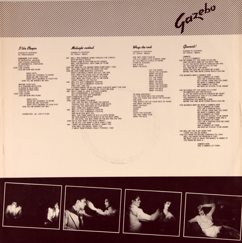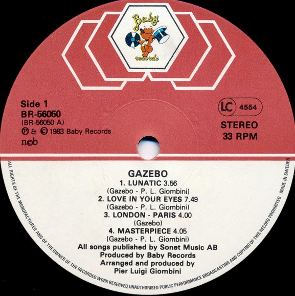 GAZEBO-GAZEBO-1983-ПЕРВЫЙ ПРЕСС SWEDEN-BABY- BR56050. Редкий шведский оригинал. Пол Маццолини (родился 18 февраля 1960 года), известный под сценическим псевдонимом Gazebo, - итальянский певец, автор песен, музыкант и музыкальный продюсер, получивший мировую известность благодаря своему стилю итало-диско в 1980-х годах. Его песня "Мне нравится Шопен" заняла 1-е место в более чем 15 странах.
