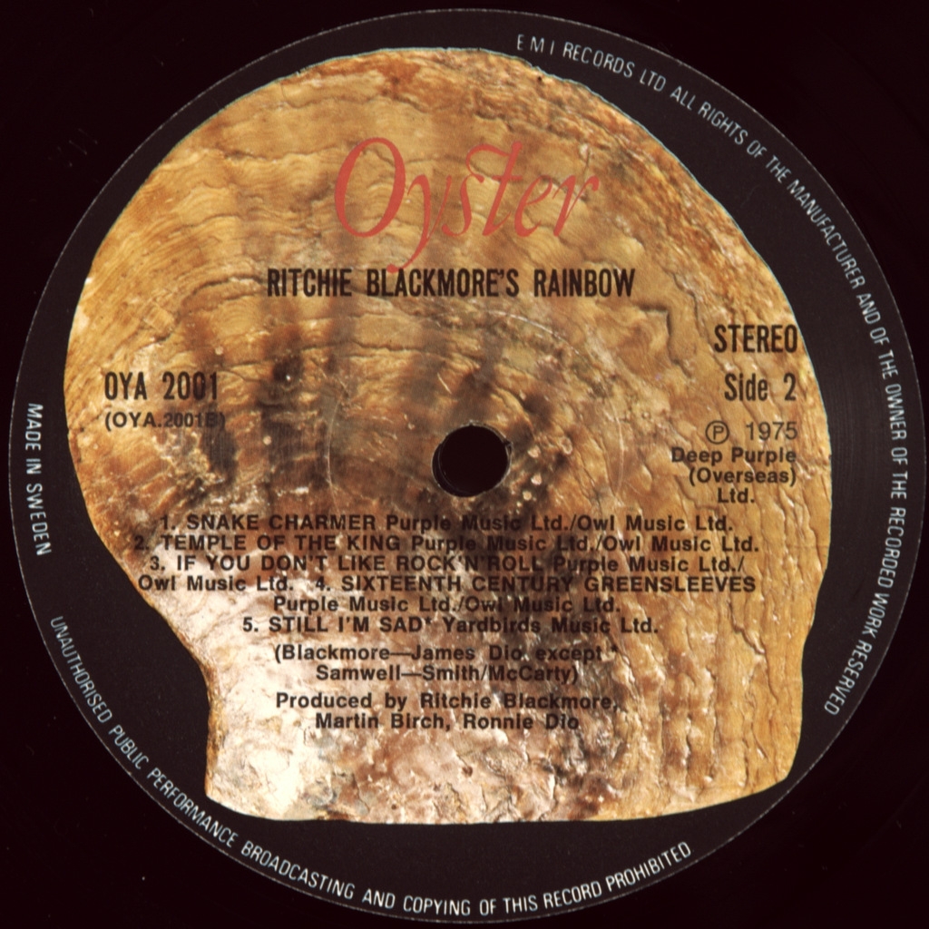 RAINBOW-RICHIE BLACKMORE'S RAINBOW-1975-Первый пресс SWEDEN-POLYDOR OYSTER- OYA2001 матрицы KENDUN A-3U/B-1U. Редкий скандинавский оригинал , отпечатанный в Британии ( Английские матрицы производства) для Швеции. Ritchie Blackmore’s Rainbow — дебютный альбом британско-американской группы Rainbow, вышедший в мае 1975 года. В чартах Британии этот диск занял 11-е место, в США — 30-е. Альбом являлся любимым для вокалиста Ронни Джеймса Дио, по его словам.