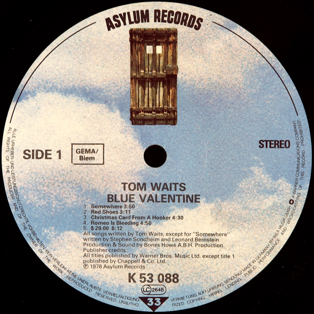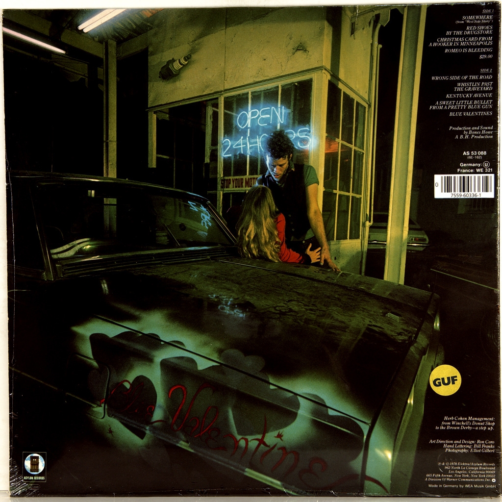WAITS, TOM-BLUE VALENTINE-1978-ОРИГИНАЛЬНЫЙ ПРЕСС 1983 GERMANY-ASYLUM-AS53088 Редкий германский оригинал шестого альбома от мэтра кабацкого блюза. Blue Valentine-шестой студийный альбом певца и автора песен Тома Уэйтса, выпущенный 5 сентября 1978 года на лейбле Asylum Records Он был записан в течение шести сессий с июля по август 1978 года с продюсером Боунсом Хоу. Рики Ли Джонс изображен с Уэйтсом на задней обложке.