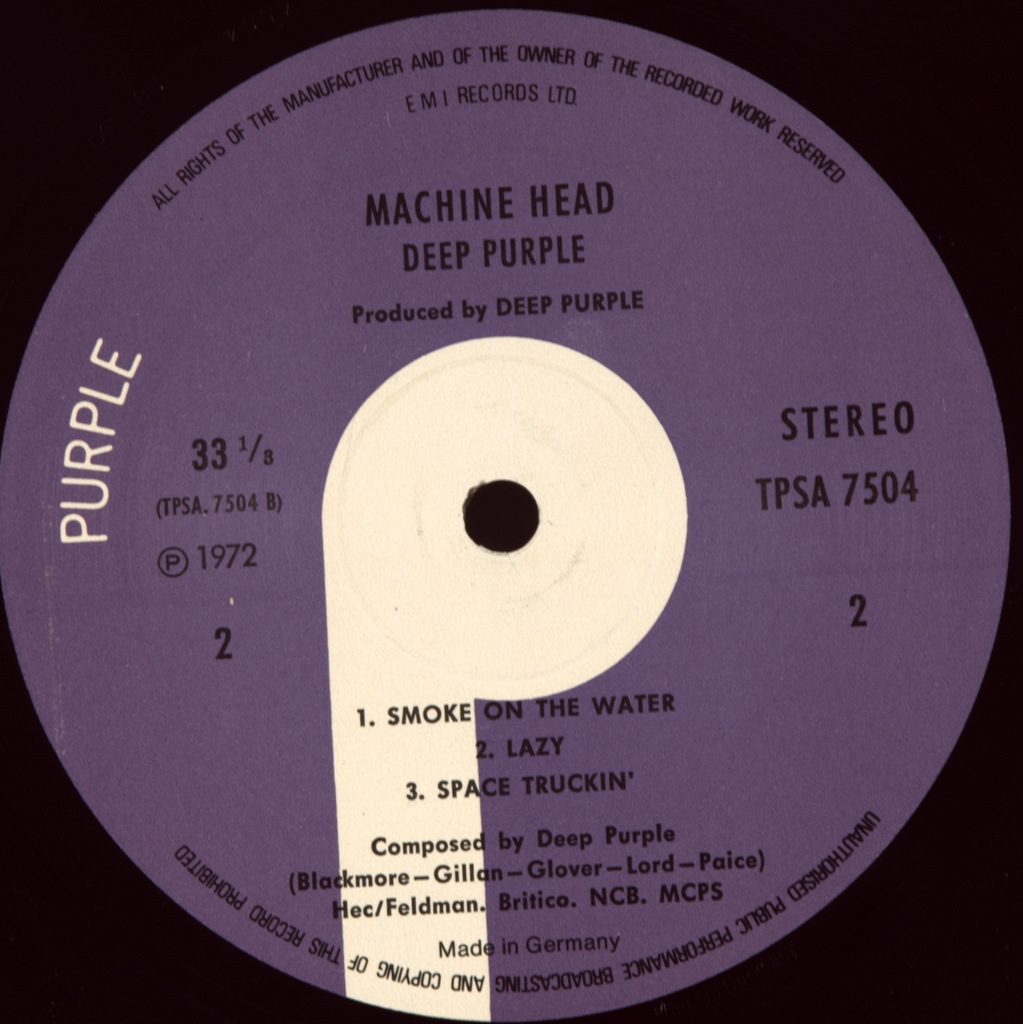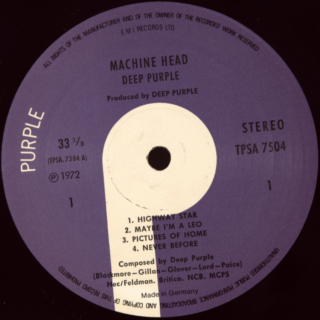 DEEP PURPLE-MACHINE HEAD-1972-ПЕРВЫЙ ПРЕСС (EXPORT) GERMANY-PURPLE- TPSA7504 матрицы A-1U/B-1U. Мега редкий экспортный германский оригинал выпущенный с британскими матрицами и номером для продажи солдатам НАТО в Европе. Machine Head— шестой студийный альбом британской рок-группы Deep Purple, выпущенный в 1972 году. Альбом часто упоминается как оказавший основное влияние на развитие раннего метала и хэви-метала, в частности; в 2002 году он занял 10-ю позицию в рейтинге «100 лучших рок-альбомов всех времён» по версии журнала Classic Rock. Коммерчески это самый успешный альбом Deep Purple, возглавивший чарты в десяти странах, включая Великобританию. Альбом оставался в топе-40 этой страны на протяжении 20 недель, и в топе Billboard 200 на протяжении 118 недель, достигнув максимальной позиции на 7 строчке.