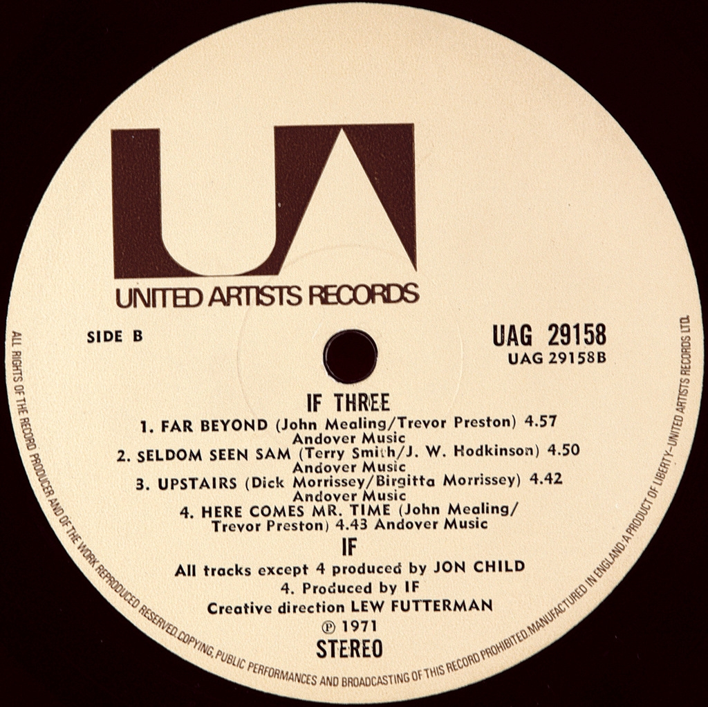 IF-THREE-1973-ПЕРВЫЙ ПРЕСС UK-UNITED ARTISTS-UAG29158. Матрицы A-1U/B-1U. Стампера 1A/1R (Мечта!) Редкий британский оригинал культовой прог группы. If 3-это третий релиз английской джазовой рок-группы If . Он был выпущен в 1971 году и достиг #171 в чарте Billboard Pop Albums. Трек "Forgotten Roads" появился в прямом эфире группы на немецком телевидении Beat-Club в сентябре 1971 года. Трек "Here Comes Mr Time" был включен в рекламный сэмплер United Artists Records All Good Clean Fun (1971).