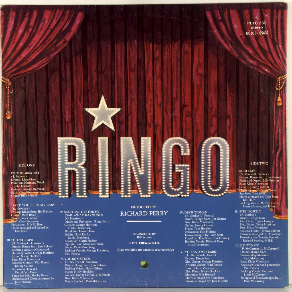 RINGO STARR-RINGO-1973-ПЕРВЫЙ ПРЕСС UK-APPLE номер PCTC252 матрицы A-1U/B-3U. Один из лучших сольных альбомов члена BEATLES, в полном комплекте с буклетом рисунков от KLAUS VOORMAN. Ringo-третий студийный альбом английского музыканта Ринго Старра, выпущенный в 1973 году на лейбле Apple Records. Он занял 7-е место в британском альбомном чарте и 2-е место в Billboard 200, и был сертифицирован RIAA как платиновый. В Канадеон занял 1-е место в национальном чарте альбомов RPM. Альбом отмечен участием всех четырех бывших "Битлз" и многочисленных приглашенных звезд, что станет подписью Старра на многих его последующих альбомах и турах.