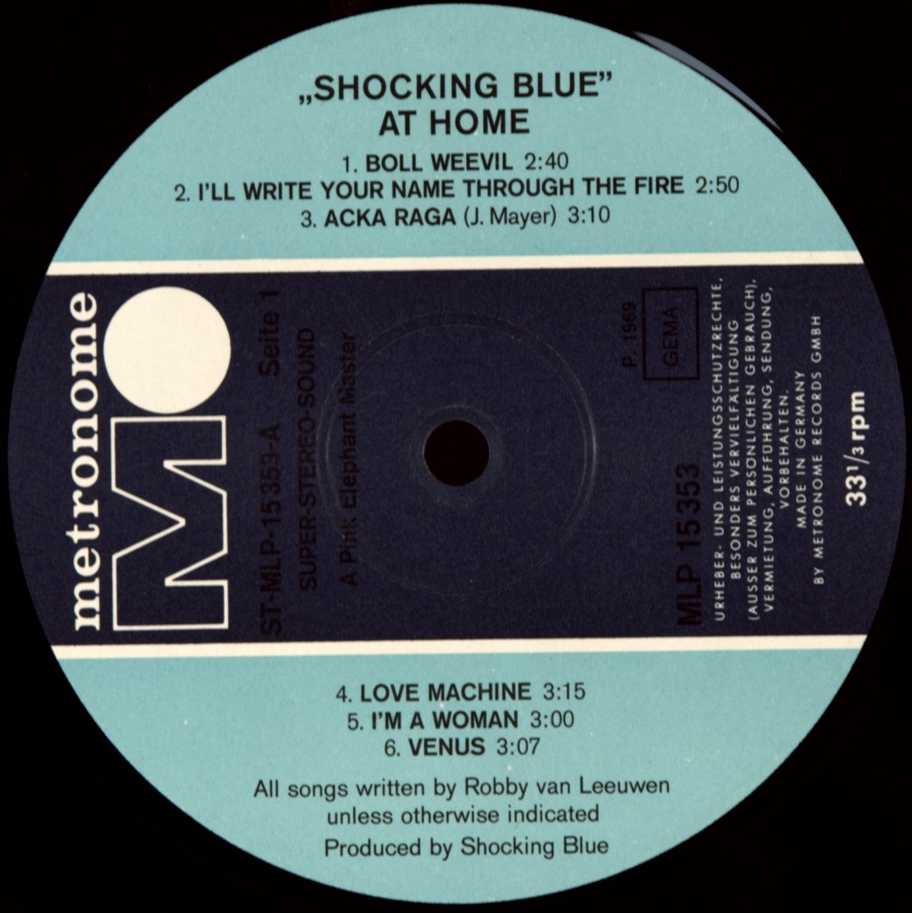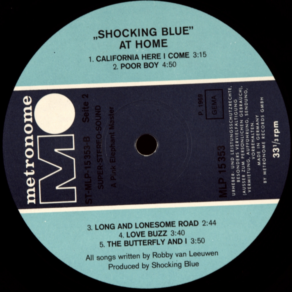 SHOCKING BLUE-AT HOME-1969 -ПЕРВЫЙ ПРЕСС GERMANY-METRONOME - MLP15353. Очень редкий германский оригинал , который включал знаменитый сингл VENUS . At Home-второй альбом рок-группы Shocking Blue. Она была выпущена в 1969 году на лейбле Pink Elephant. Этот альбом стал дебютным для Маришки Верес. Это первая запись группы с певицей Мариской Верес. Робби ван Левен приобрел Вереса в попытке подражать форме женского самолета Джефферсона. Благодаря замечательному вокальному исполнению Вереса и потрясающей внешности у группы наконец-то появилась адекватная фронтвумен. Второй альбом группы представлял собой смесь влияний от поп-рока до психоделического рока. Есть также ранние свидетельства их интереса к Americana, с такими треками, как "California Here I Come" и "Harley Davidson". В целом, он наиболее известен своим хитовым синглом "Venus- который занял первое место в американских национальных чартах. Никогда больше группа не добивалась такого успеха в США