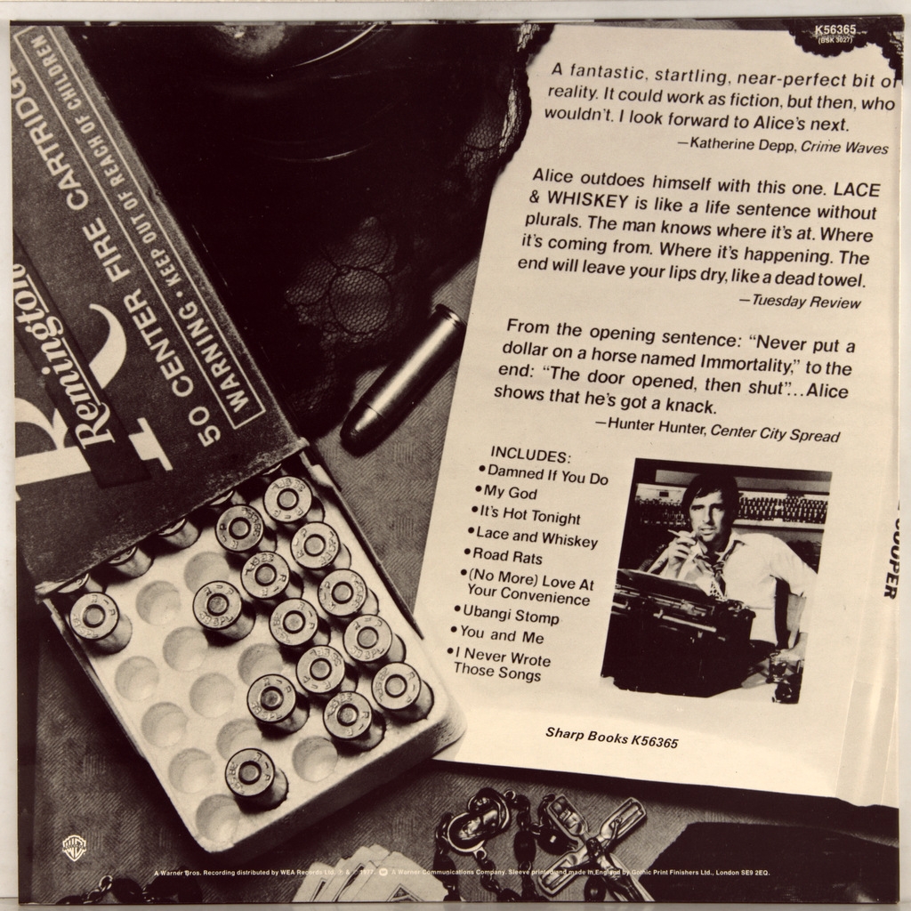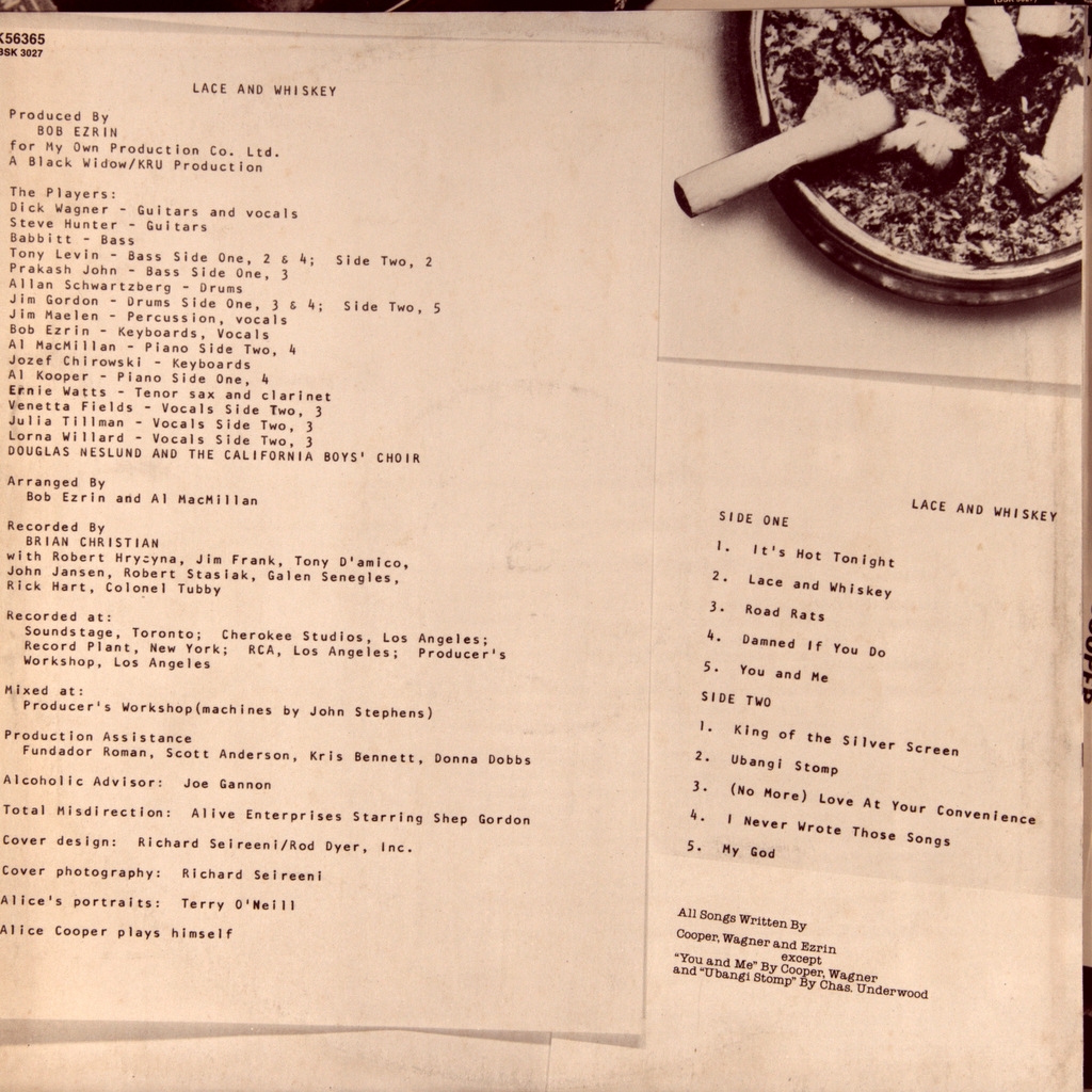 ALICE COOPER-LACE AND WHISKEY -1977-ПЕРВЫЙ ПРЕСС UK-WARNER-K56365. Матрицы A-1/B-1 Редкий британский оригинал культового альбома. Lace and Whiskey - третий сольный и десятый студийный альбом американского певца Элиса Купера, выпущенный 29 апреля 1977 года компанией Warner Bros.Альбом достиг 42-й строчки в США и 33-й строчки в британском чарте альбомов
