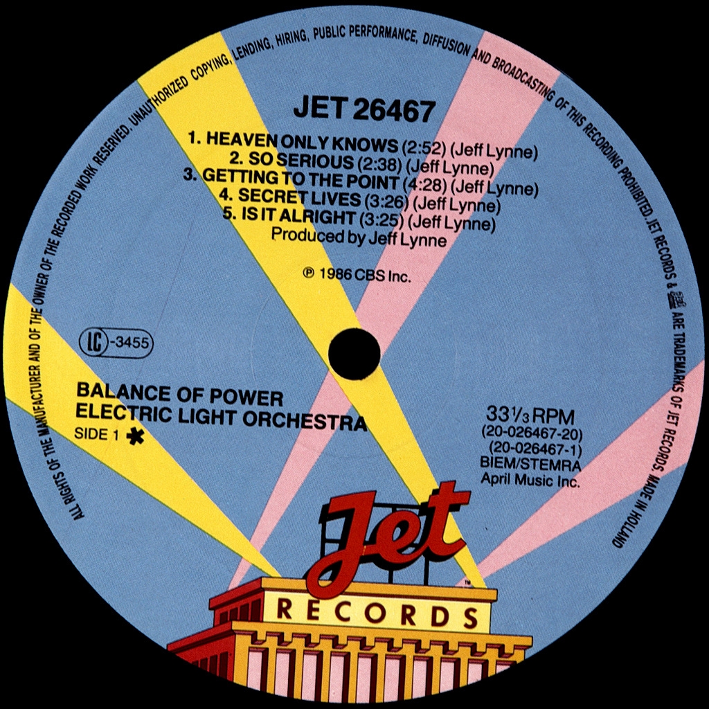 ELECTRIC LIGHT ORCHESTRA-BALANCE OF POWER -1986-ПЕРВЫЙ ПРЕСС EU-HOLLAND-JET-26467 Редкий оригинал культового альбома. Balance of Power - одиннадцатый студийный альбом группы Electric Light Orchestra (ELO), выпущенный в 1986 году. Это последний альбом группы с участием соучредителя Бев Бевана на барабанах, а также последний альбом, в который внес значительный вклад клавишник Ричард Тэнди. Альбом получил высокие оценки и расположился в чартах Европы с 3 места в Швеции до 19 места в Германии. Сертифицирован в Британии серебром -60000 копий.