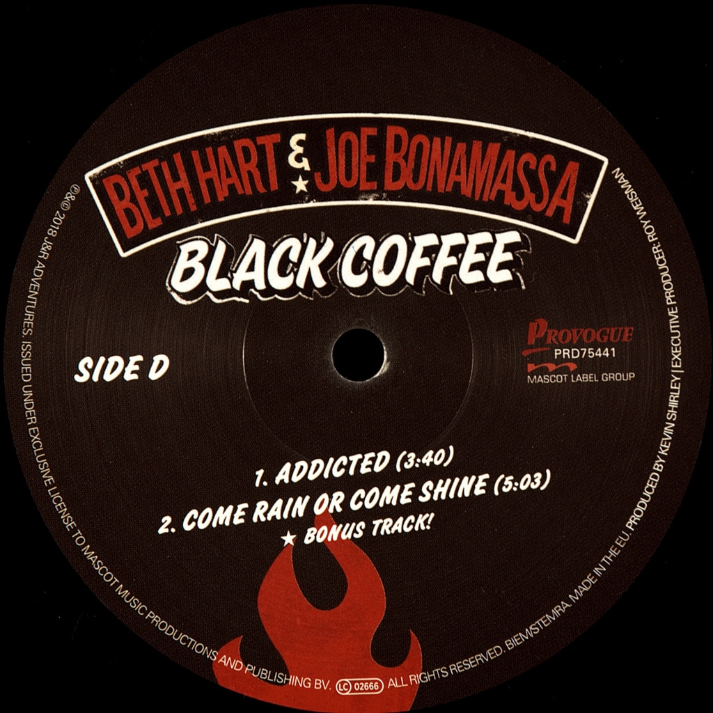 BETH HART AND JOE BONAMASSA-BLACK COFFEE-2018-ПЕРВЫЙ ПРЕСС UK/EU-PROVOGUE-PRD75441. Редкий оригинал культового альбома. Black Coffee - третий кавер-альбом американской певицы Бет Харт и блюз-рок-гитариста Джо Бонамассы, выпущенный 26 января 2018 года на лейбле J/R Adventures и лейбле Mascot Group. Альбом следует за их совместным альбомом 2013 года под названием Seesaw. Альбом получился таким же звездным как и предшественник. Грэмми, моментальное золото, 28 недель на первом месте в Британии и США.