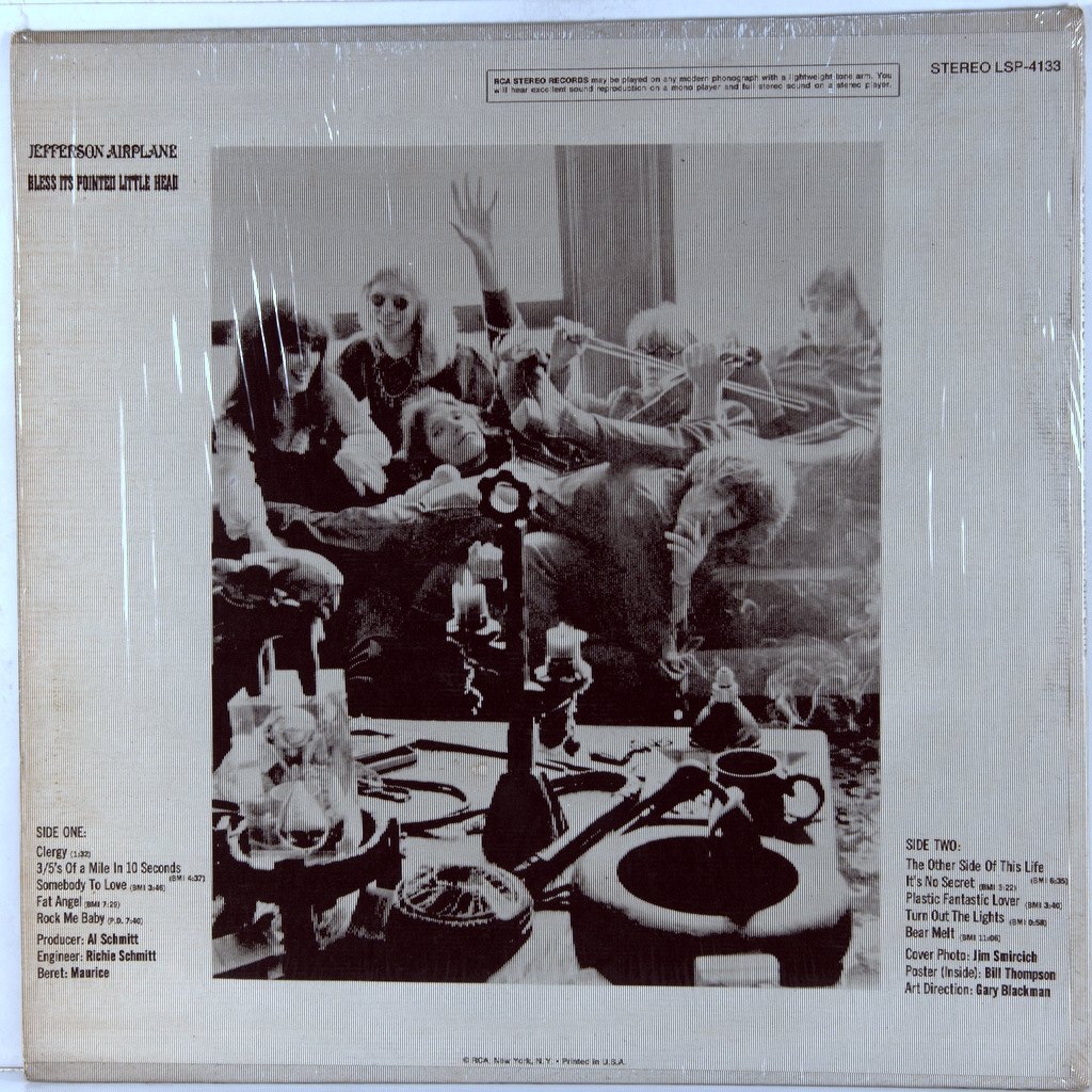 JEFFERSON AIRPLANE-BLESS ITS POINTED LITTLE HEAD+ POSTER-1969- ПЕРВЫЙ ПРЕСС USA-RCA-LSP4133. Очень редкий оригинал культового альбома. Bless It Pointed Little Head - щестой альбом Jefferson Airplane, записанный живьем в Филмор-Ист и Вест осенью 1968 года и выпущенный в 1969 году как RCA Victor LSP-4133. Пять песен с альбома не появлялись ни на одной из предыдущих студийных записей группы. Многие записи the Airplane на альбоме были длиннее, чем их студийные выступления. Выступление подчеркнуло их вокальную гармонию и показало более жесткую рок-группу. Гитарные и басовые партии были более глубокими в их построении, раскрывая сложные инструментальные партии. Альбом попал на 17 место в Billboard 200.