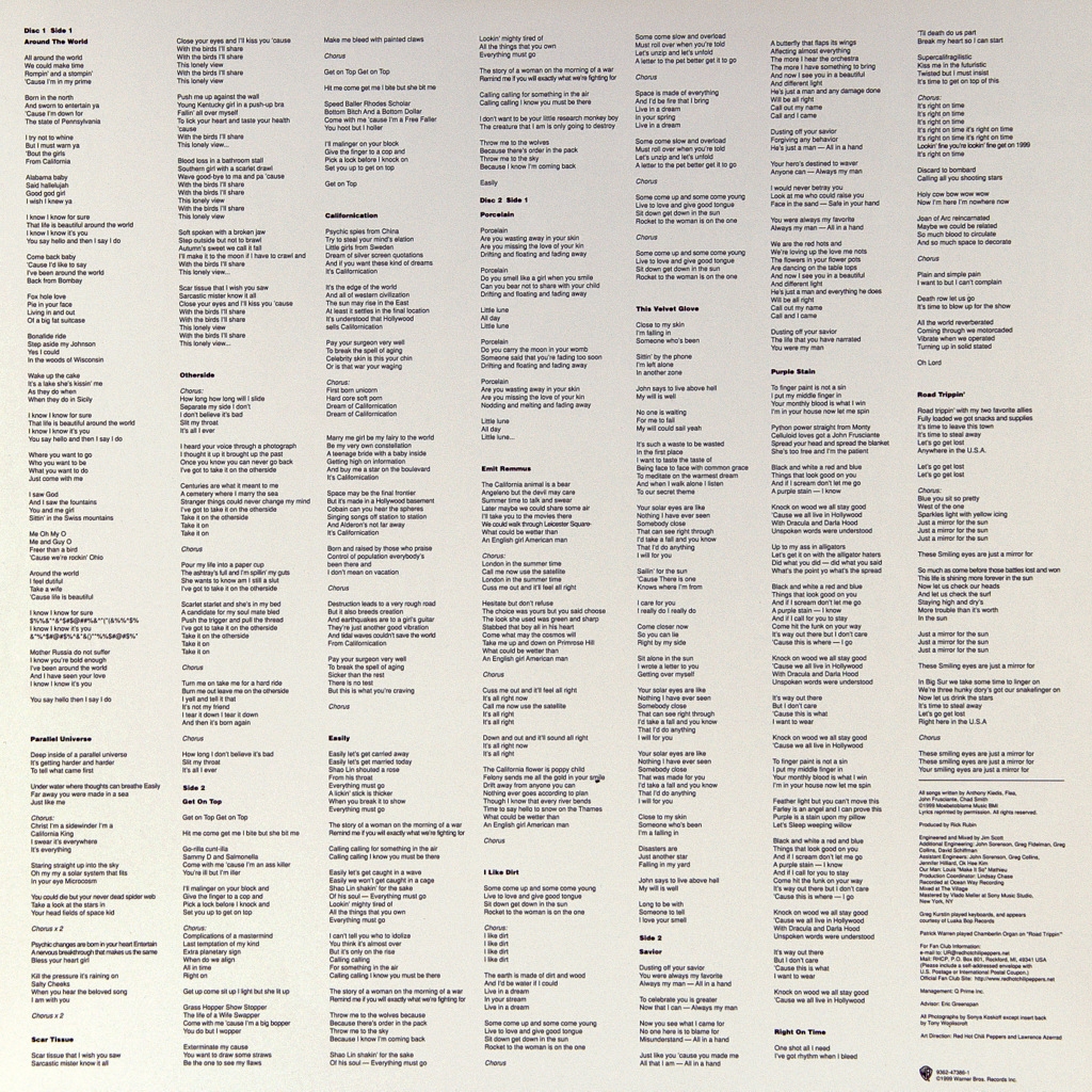 RED HOT CHILI PEPPERS-CALIFORNICATION(2LP'S)-1999-ПЕРВЫЙ ПРЕСС UK/EU-WARNER BROS-9362-47386-1. Очень редкий оригинал культового альбома. Californication — седьмой студийный альбом американской рок-группы Red Hot Chili Peppers, выпущенный 8 июня 1999 года. Как и две предыдущие пластинки группы, альбом был спродюсирован Риком Рубином и выпущен на мейджор-лейбле Warner Bros. Records. Californication ознаменовал возвращение гитариста Джона Фрушанте, покинувшего Red Hot Chili Peppers в 1992 году во время тура в поддержку альбома Blood Sugar Sex Magik. Фрушанте официально вернулся в состав группы в 1998 году, заменив Дэйва Наварро. Помимо привычных для группы сексуальных тем, альбом затрагивает такие темы как смерть, самоубийство, наркотики, глобализация, а также путешествия. В альбом вошли такие хиты как «Californication», «Around the World», «Otherside», а также «Scar Tissue», выигравшая премию «Грэмми» в категории «Лучшая рок-песня». Californication является самым коммерчески успешным альбомом группы. Он добрался до 3-й строчки хит-парада Billboard 200. На сегодняшний день Californication продан тиражом более 16 миллионов копий, включая 5 миллионов в США. Многие критики отмечали Californication как переломную запись, изменившую музыкальный стиль группы: на фоне всех предыдущих пластинок RHCP (очень динамичных), этот альбом более спокойный, рефлексивный и эпифанический- отмечал Грэг Тэйт из Rolling Stone.