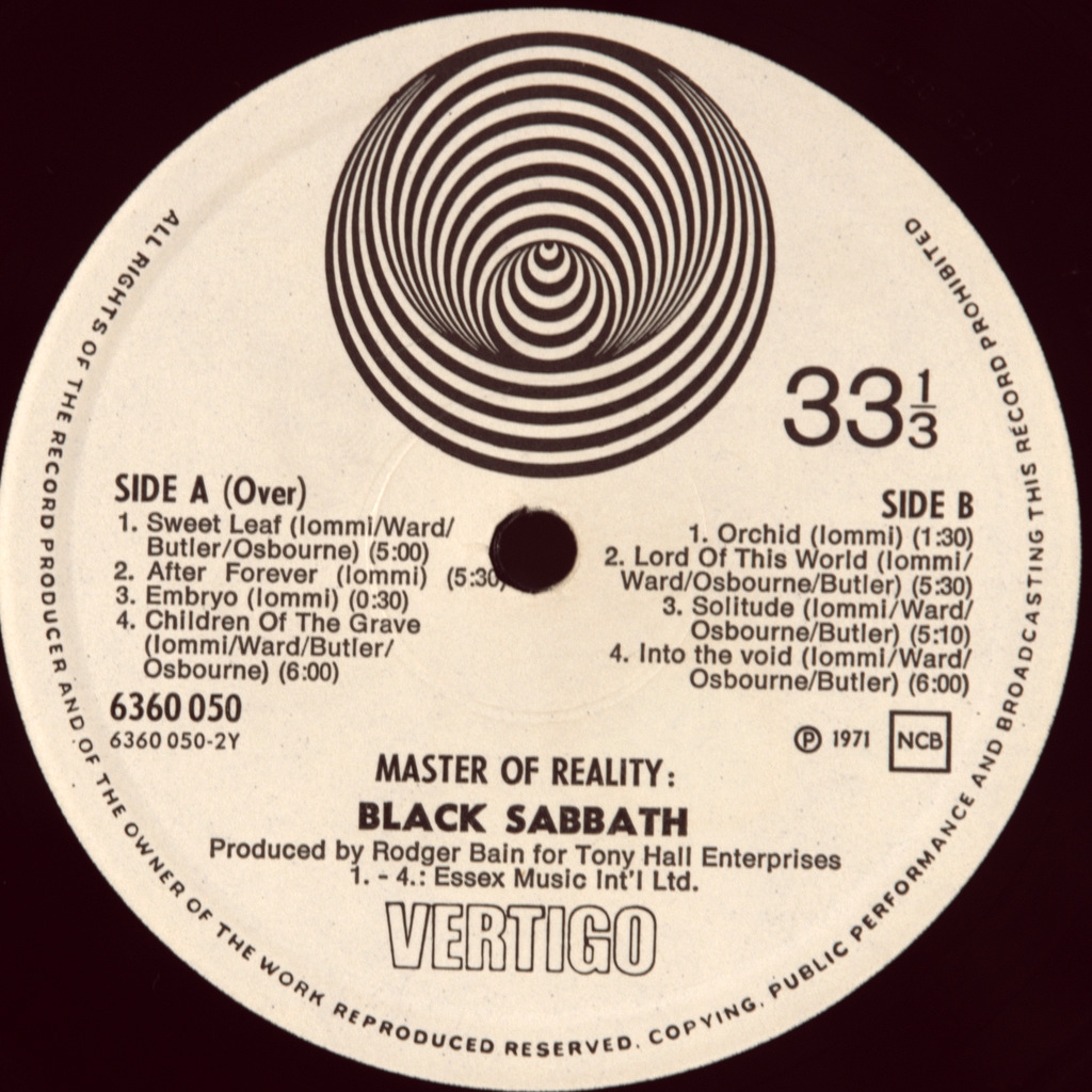 BLACK SABBATH-MASTER OF REALITY-1971-ПЕРВЫЙ ПРЕСС SWEDEN-VERTIGO SWIRL-6360050. Редкий скандинавский оригинал культового альбома. Master of Reality — третий студийный альбом британской рок-группы Black Sabbath, записанный продюсером Роджером Бэйномruen в студии Record Plant (Лос-Анджелес, Калифорния) и выпущенный 21 июля 1971 года. Альбом поднялся до 5-го места в списках UK Album Charts и до 8-го — в Billboard 200. В списке 500 лучших альбомов всех времён журнала Rolling Stone он занимает 298 место.