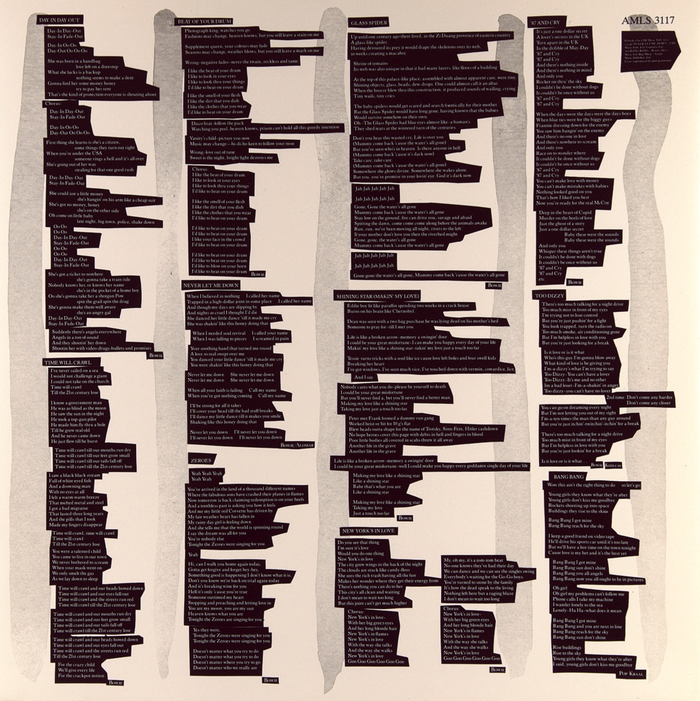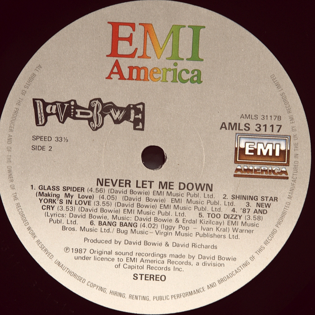 BOWIE, DAVID -NEVER LET ME DOWN-1987-ПЕРВЫЙ ПРЕСС UK-EMI-AML3117. Редкий британский оригинал культового альбома ..Never Let Me Down - 17-й студийный альбом английского музыканта Дэвида Боуи, выпущенный 20 апреля 1987 года на лейбле EMI America. Он был записан в Mountain Studios в Монтре, Швейцария, и на Power Station в Нью-Йорке с сентября по ноябрь 1986 года. Альбом был спродюсирован Боуи совместно с Дэвидом Ричардсом, а также при участии Питера Фрэмптона на гитаре. В музыкальном плане Never Let Me Down характеризовался как поп-рок, арт-рок и хард-рок; сам Боуи считал этот альбом возвращением к рок-н-роллу. На обложке изображен Боуи в окружении многочисленных элементов из песен. Never Let Me Down имел коммерческий успех, достигнув 6-го места в Великобритании. Было выпущено три сингла, каждый из которых попал в британский Топ-40.