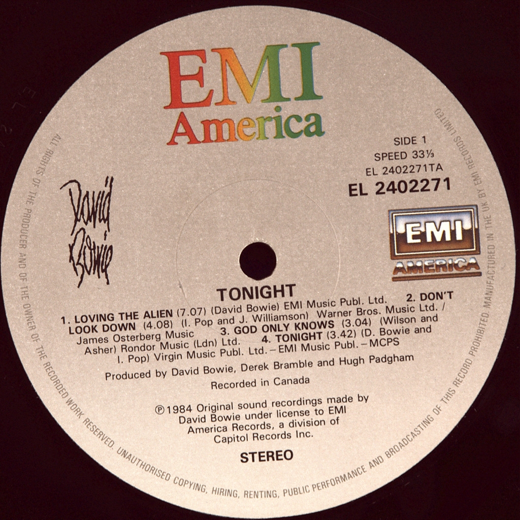 BOWIE, DAVID -TONIGHT-1984-ПЕРВЫЙ ПРЕСС UK-EMI-EL2402271. Редкий британский оригинал культового альбома ..Tonight - 16-й студийный альбом английского певца и автора песен Дэвида Боуи, выпущенный 24 сентября 1984 года на лейбле EMI America. Продолжение его самого коммерчески успешного альбома Let's Dance, он был написан и записан в середине 1984 года в Le Studio в Морин-Хайтс, Канада, после завершения Serious Moonlight Tour. Боуи, Дерек Брамбл и Хью Пэдгэм выступили сопродюсерами альбома. "Tonight" продолжил череду коммерческих успехов Боуи, достигнув пика на первом месте в UK Albums Chart. , хотя и не так успешно, в США, как и его предшественник, сегодня достигла своего пика под номером 11 в чарте Billboard 200 лучших альбомов чарта.