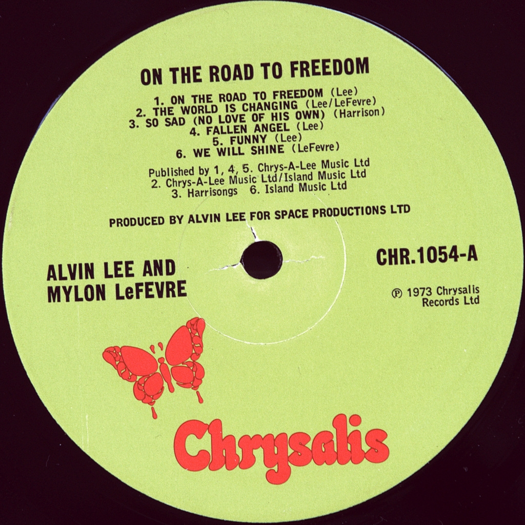 LEE, ALVIN AND MYLON LEFEVRE (EX-TEN YEARS AFTER) -ON THE ROAD TO FREEDOM-1973-ПЕРВЫЙ ПРЕСС UK-CHRYSALIS-CHR1054.Матрицы A-2U/B-2U Стампера 1M/1P (Мечта!) Редкий британский оригинал гитариста из TEN YEARS AFTER. On the Road to Freedom - альбом английского рок-музыканта Элвина Ли и американского госпел-певца Майлон Лефевр. Выпущенный в ноябре 1973 года, это был первый сольный проект Ли, который добился международного успеха благодаря своему руководству блюз-рок группой десять лет спустя. Альбом был записан в домашней студии Ли в южном Оксфордшире, которую он и Лефевр построили специально для проекта. Приглашенными музыкантами на сессиях были Джордж Харрисон, Стив Уинвуд, Джим Капальди, Рон Вуд и Мик Флитвуд. "Fallen Angel" и композиция Харрисона "So Sad (No Love of His Own)" были выпущены в качестве синглов с альбома. Альбом On the Road to Freedom был хорошо принят музыкальными критиками, хотя более тонкая игра Ли на гитаре и новое музыкальное направление не приветствовались поклонниками Ten Years After.