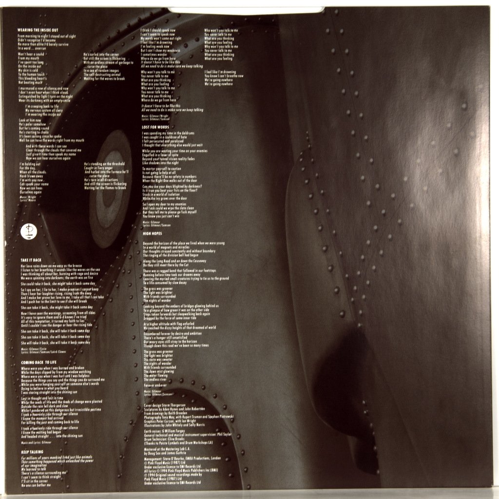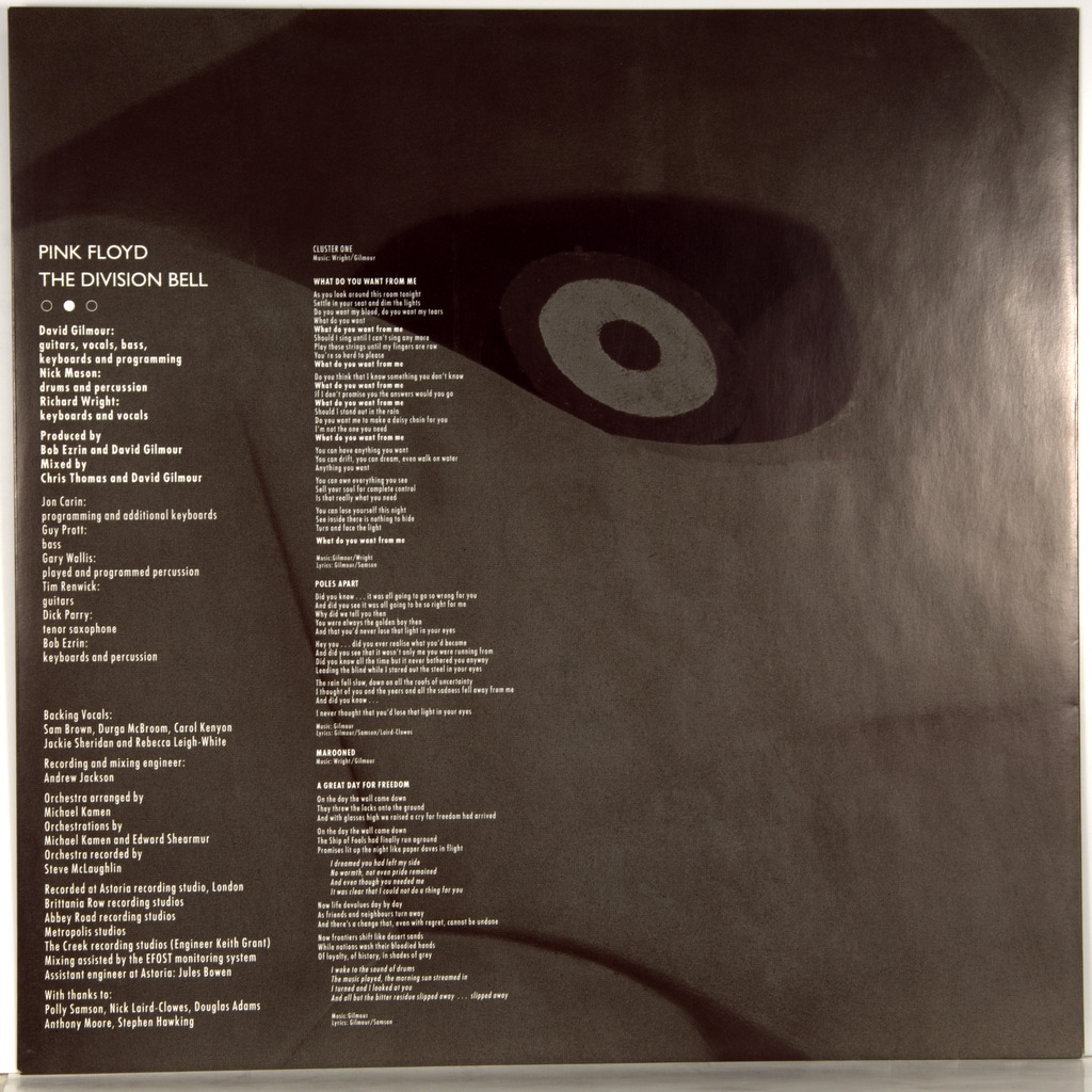PINK FLOYD-THE DIVISION BELL-1994-ПЕРВЫЙ ПРЕСС UK-EMI- 724382898412. Матрицы A-2-2-1 FLOYD A TML-X / B-1-1-1 TML-M FLOYD B. Очень редкий оригинал культового альбома. The Division Bell — четырнадцатый студийный альбом британской прогрессив-рок-группы Pink Floyd. На территории Великобритании диск вышел 28 марта 1994 года на лейбле EMI, в США релиз состоялся 4 апреля того же года на Columbia Records. Музыка по большей части написана Дэвидом Гилмором и Ричардом Райтом, тексты песен посвящены преимущественно теме общения. Запись альбома проходила в нескольких местах, в числе которых принадлежащая Pink Floyd студия Britannia Row Studios и Astoria. The Division Bell достиг верхней строчки хит-парадов Великобритании и Соединённых Штатов, однако критики отнеслись к нему прохладно. Пластинка вышла сразу после турне Pink Floyd по США и Европе. В июне 1994 года диск удостоился в США статуса золотого, платинового и дважды платинового, а в январе 1999 года стал трижды платиновым.