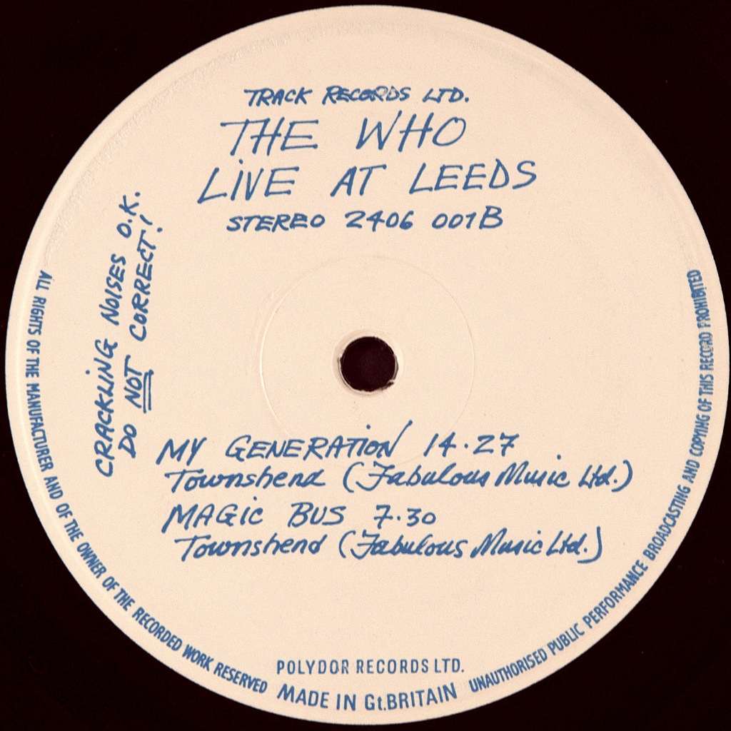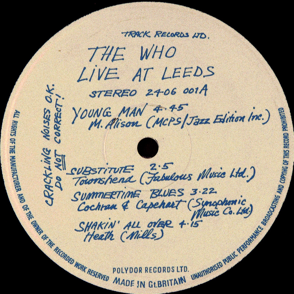 THE WHO-LIVE AT LEEDS ( RED LETTERING)-1970-ПЕРВЫЙ ПРЕСС UK-TRACK-2406001. Очень редкий британский оригинал , в версии красной печати на обложке. Live at Leeds - первый концертный альбом английской рок-группы The Who. Он был записан в трапезной Университета Лидса 14 февраля 1970 года и является их единственным концертным альбомом Альбом был выпущен 23 мая 1970 года Decca и MCA в Соединенных Штатах, а также Track и Polydor в Соединенном Королевстве. Он был переиздавался несколько раз и в нескольких различных форматах. С момента своего выхода Live at Leeds был назван несколькими музыкальными критиками лучшей концертной рок-записью всех времен.