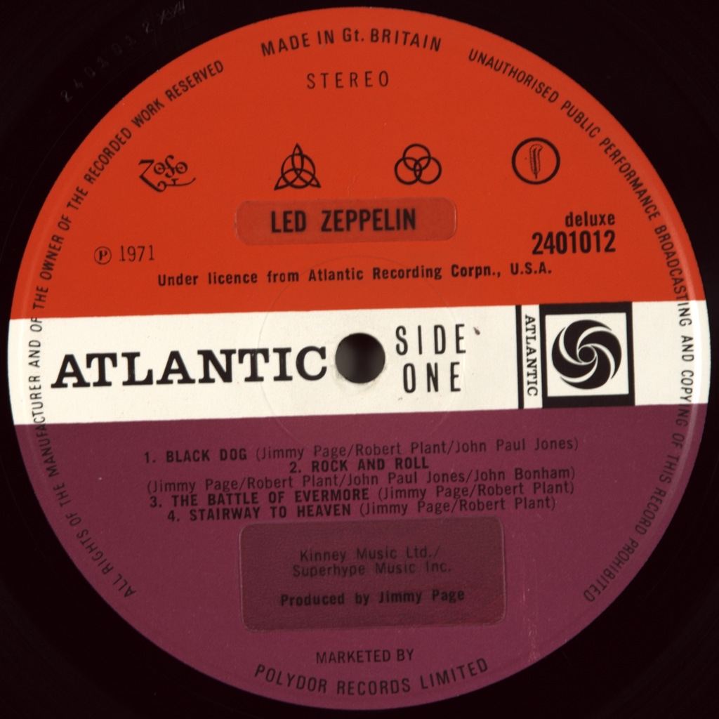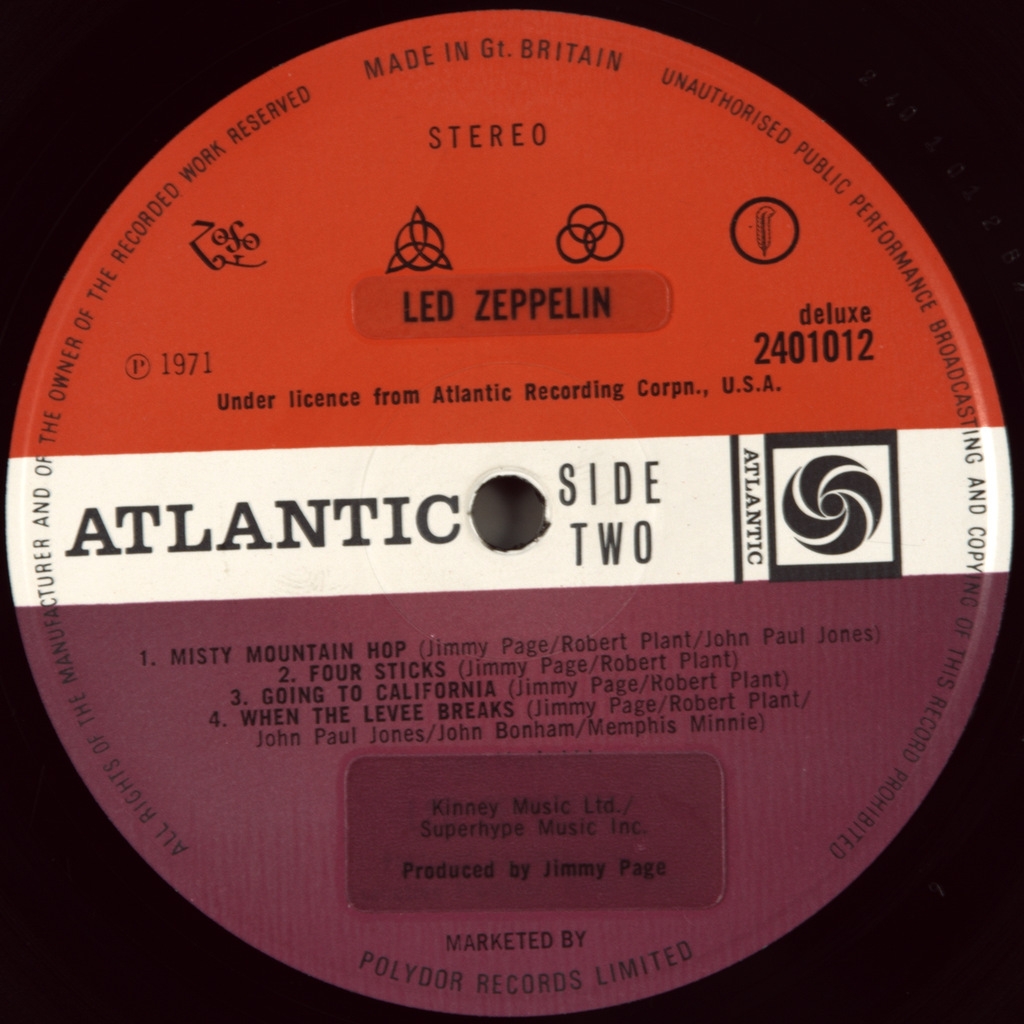 LED ZEPPELIN-IV (STICKER LED ZEP. ON LABEL)-1971-ПЕРВЫЙ ПРЕСС UK-ATLANTIC- номер 2401012 матрицы PESKO A3/ PORKY B4