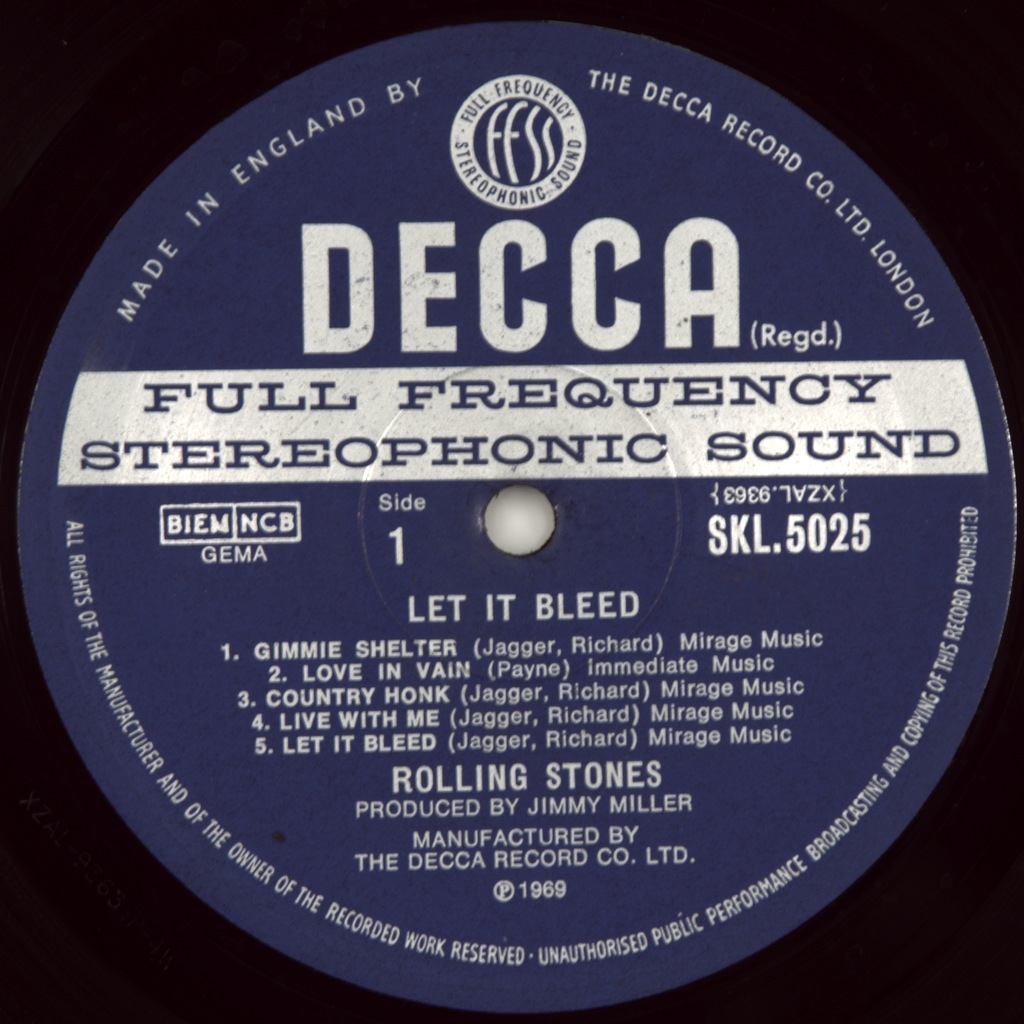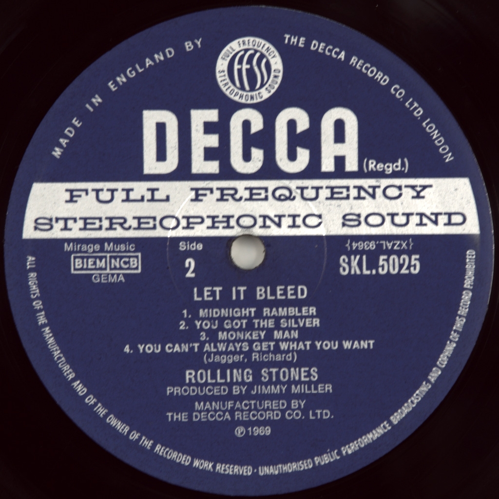 ROLLING STONES-LET IT BLEED-1969-ПЕРВЫЙ ПРЕСС(СТЕРЕО) UK-DECCA- номер SKL5025 матрицы XZAL9363-P4W/XZAL9364-P4W стампера 1OG/1GG